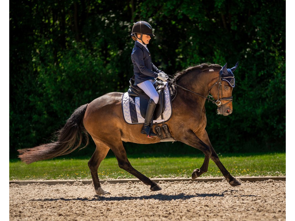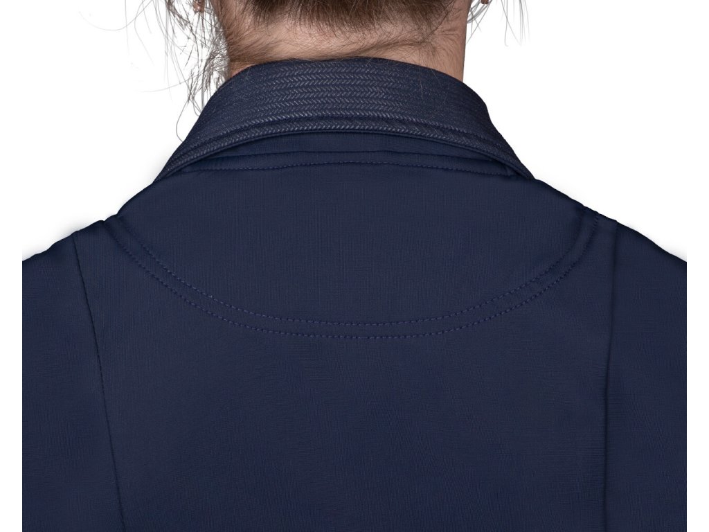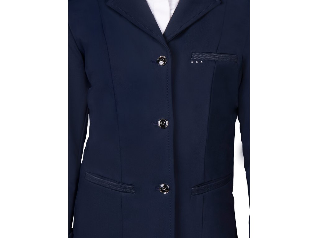 Wysokiej jakości kurtka konkursowa wykonana z wysoce oddychającego i elastycznego materiału dla maksymalnego komfortu. Wyposażona w praktyczne zapięcie na zamek błyskawiczny, które jest ukryte za guzikami. Kołnierz i kieszenie są ozdobione błyszczącym wzorem. Trzy błyszczące cyrkonie wraz z rozcięciem z tyłu nadają mu niezwykle elegancki wygląd. Frak jest również dostępny w rozmiarach dla dorosłych i idealnie pasuje do innych produktów z kolekcji Kae.