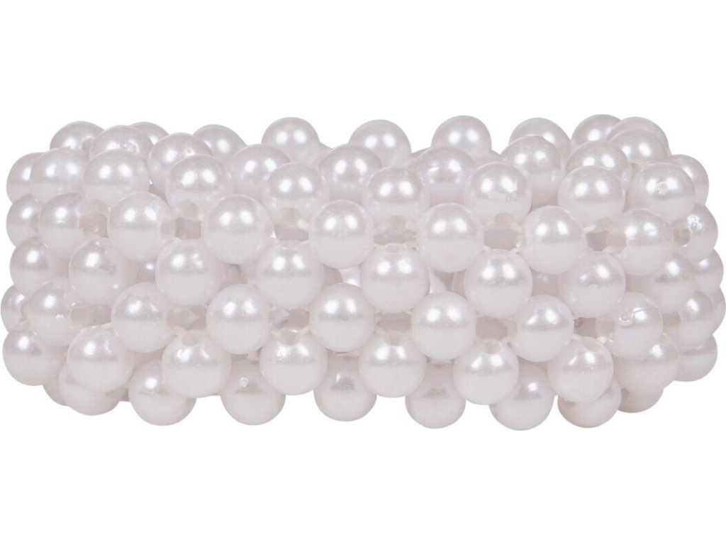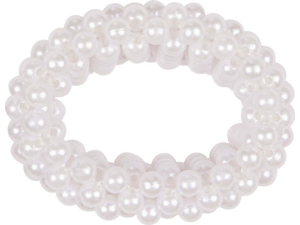 Elegancka gumka do włosów z okrągłymi koralikami w kolorze białym. Świetny dodatek na wyścigi.