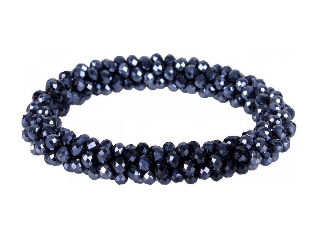 Gumka do włosów z nawlekanymi, błyszczącymi, elastycznymi i fasetowanymi koralikami. Może być również noszona jako bransoletka. Dostępna w kilku kolorach.