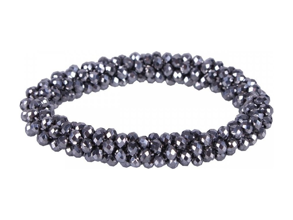 Gumka do włosów z nawlekanymi, błyszczącymi, elastycznymi i fasetowanymi koralikami. Może być również noszona jako bransoletka. Dostępna w kilku kolorach.