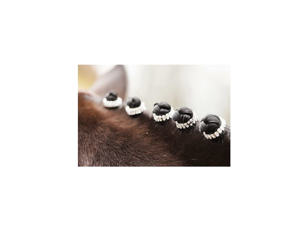 Zestaw ozdobnych gumek do grzywy. Gumki z delikatnymi, błyszczącymi dżetami stanowią piękną ozdobę na zawody. Wielkość opakowania 5 lub 20 sztuk.