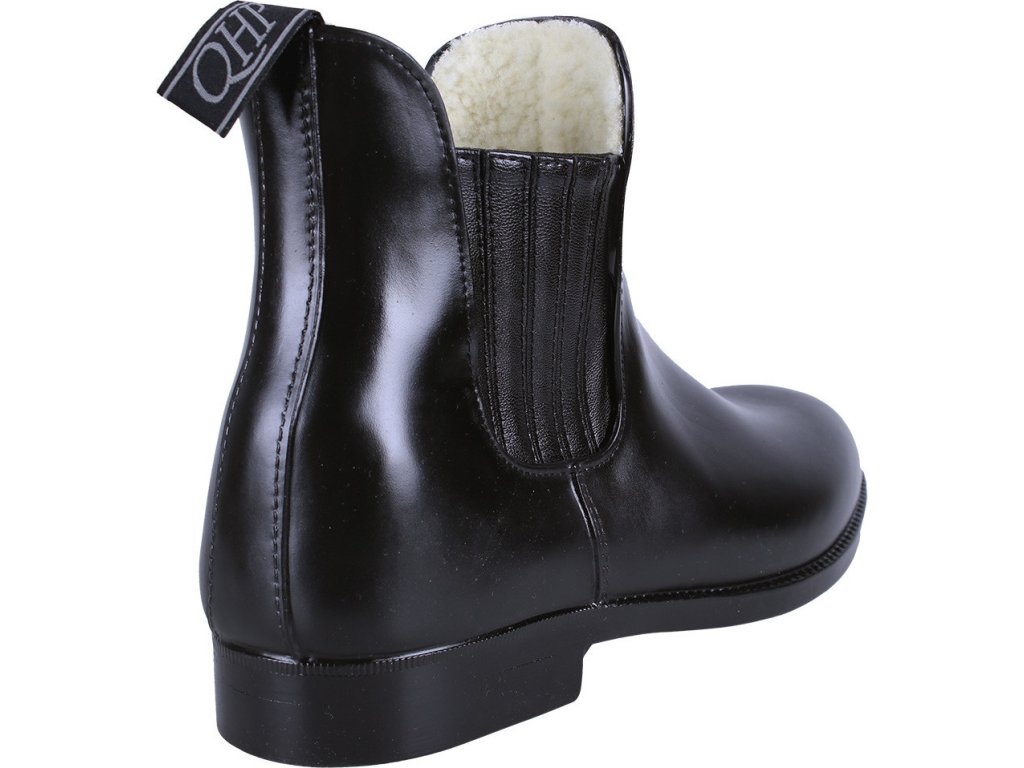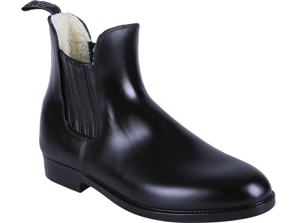 Wygodne zimowe sztyblety jodhpur, idealnie nadające się na chłodną zimową pogodę. Wykonane z gumy, co zapewnia wodoodporność. Wnętrze butów jest wyściełane ciepłym sztucznym futrem. Boczna elastyczna wstawka pokryta sztuczną skórą, zapewniająca ochronę przed zimnem i wiatrem. Elastyczna wstawka wraz z pętelką z tyłu ułatwia zakładanie. W kolorze czarnym.