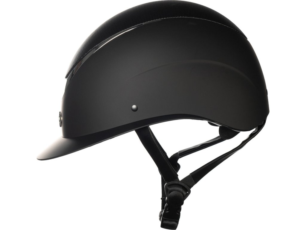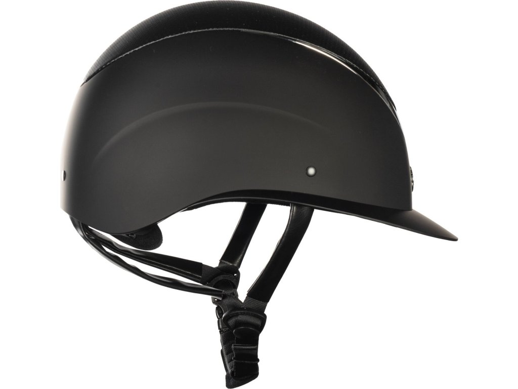 Elegancki kask jeździecki marki HKM. Wyposażony w obrotowe pokrętło z tyłu, które umożliwia dostosowanie rozmiaru do potrzeb. Otwory wentylacyjne zapewniają wentylację. Pasek pod brodą jest miękko wyściełany i można go łatwo regulować. Nadaje się do codziennej jazdy, jak i na zawody. Kask spełnia europejską normę EN 1384:2023.