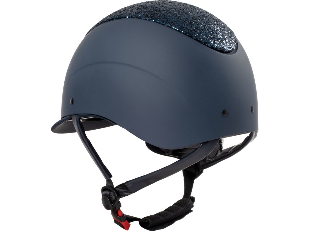 Kask jeździecki wykonany z wysokiej jakości materiałów, dzięki czemu jest wyjątkowo odporny na uderzenia. Wyposażony w pokrętło z tyłu, które umożliwia dopasowanie rozmiaru do potrzeb.Przednie otwory wentylacyjne zapewniają doskonałą wentylację powietrza. Wygodna i oddychająca wewnętrzna wyściółka jest wyjmowana, co ułatwia konserwację. Miękki pasek pod brodą wyściełany sztuczną skórą jest hipoalergiczny i antybakteryjny oraz posiada łatwo regulowaną klamrę. Ozdobiony brokatem i logo Equestro. Kask jest zgodny z aktualną normą VG1 01.040 2014-12. Dostępne w dwóch kolorach. Dostępny w rozmiarach S (52–54 cm), M (55–57 cm) i L (58–60 cm).