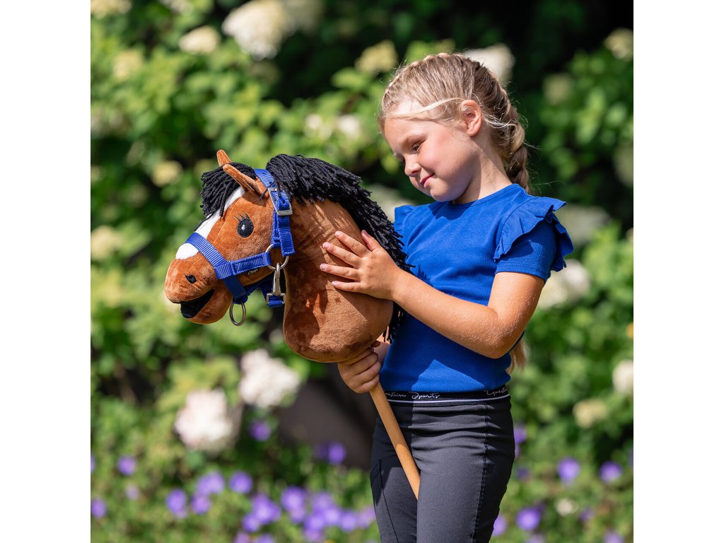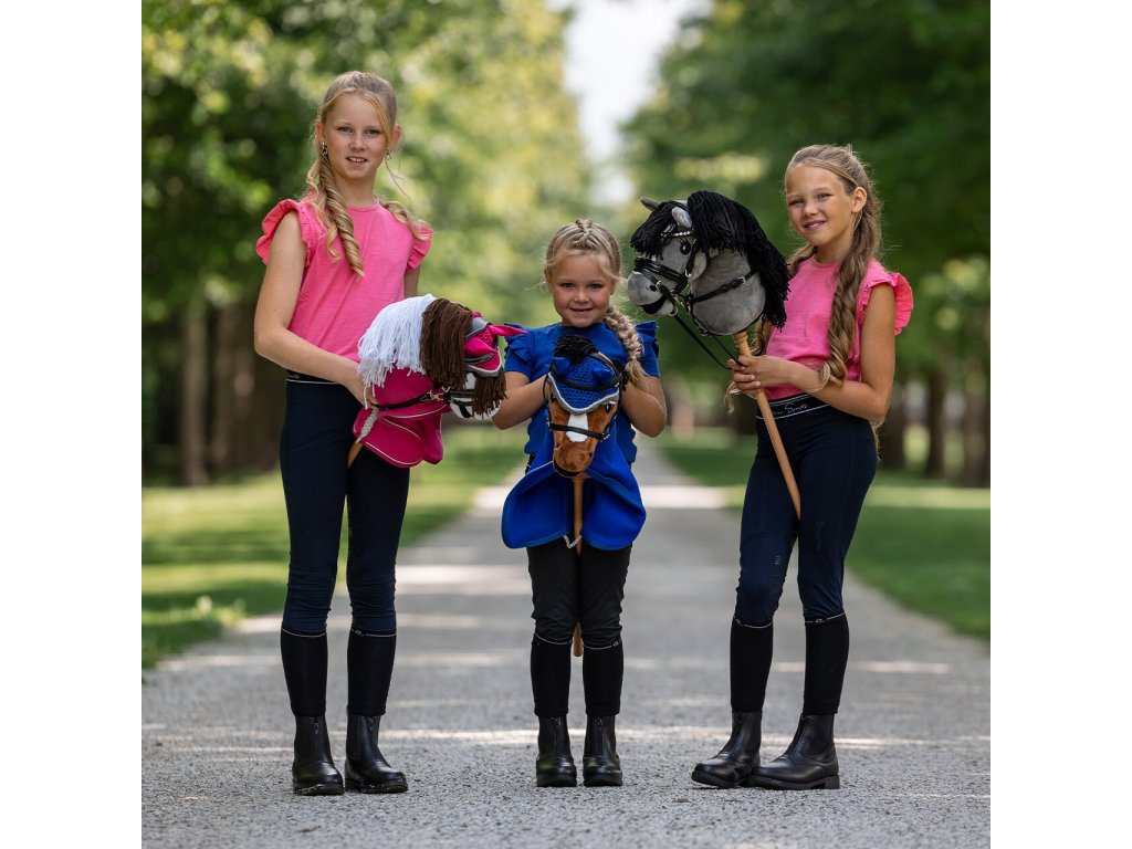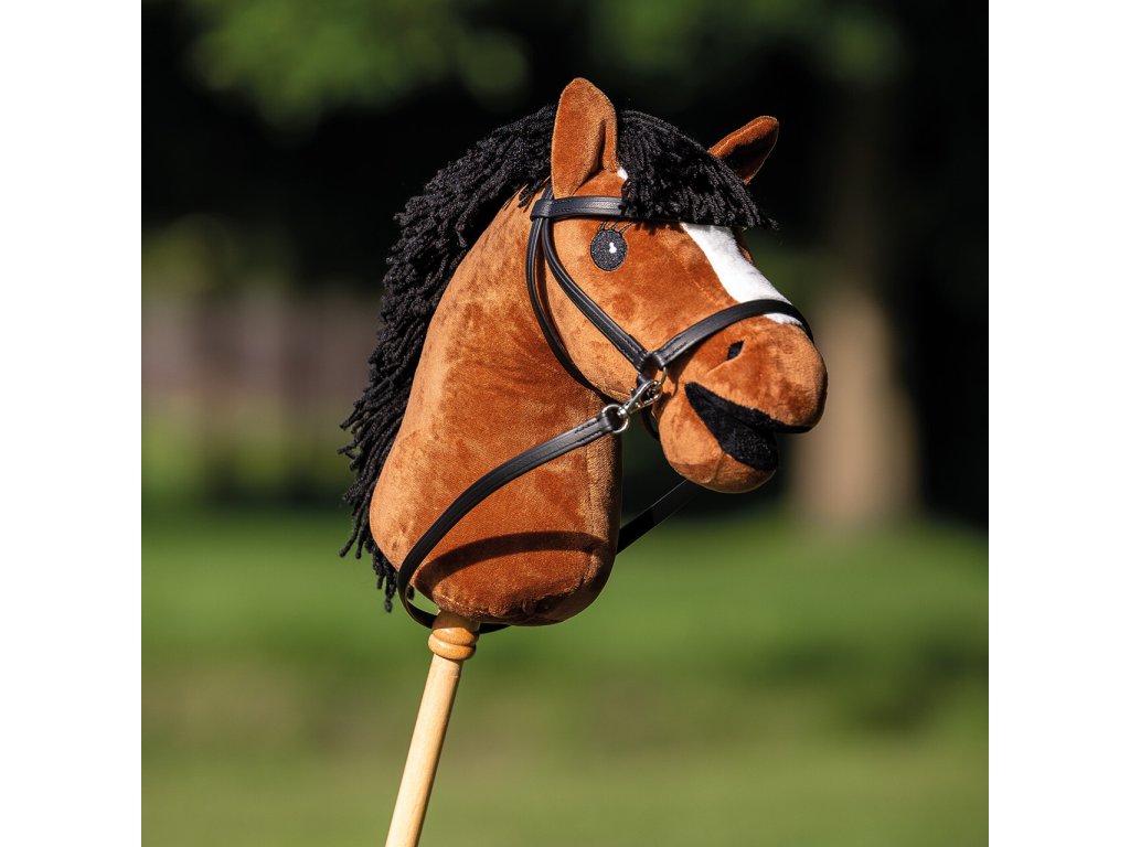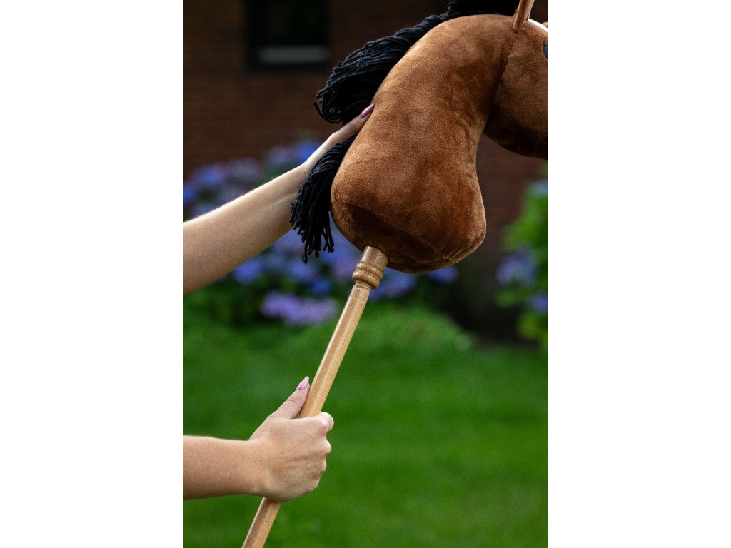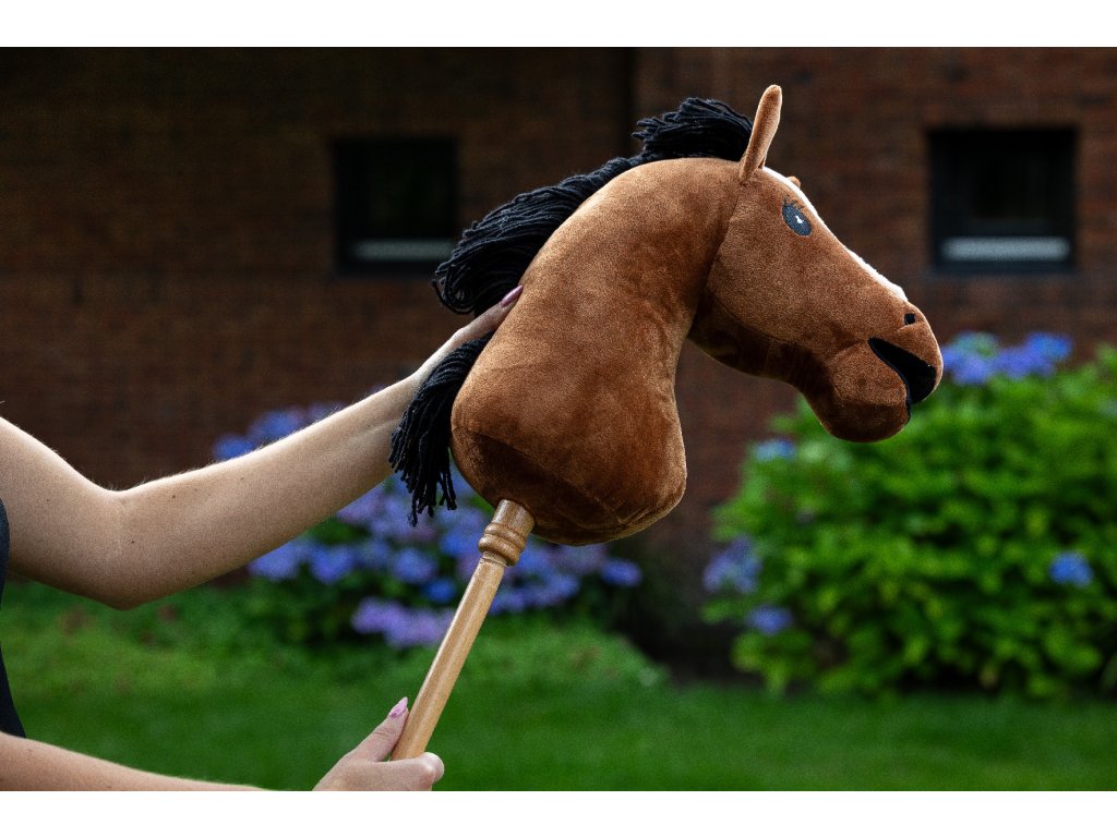 Hobby horse to idealny wybór dla wszystkich małych miłośników koni. Koń jest wykonany z miękkiego materiału z piękną grzywą. Akcesoria można dokupić do hobby horse (nauszniki, kantar, ogłowie lub derka polarowa). Odłączany drewniany kij jest dołączony. Hobby horse jest dostarczany w papierowym opakowaniu, które służy jako przenośna stajnia. Całkowita wysokość hobby horse: 90 cm.