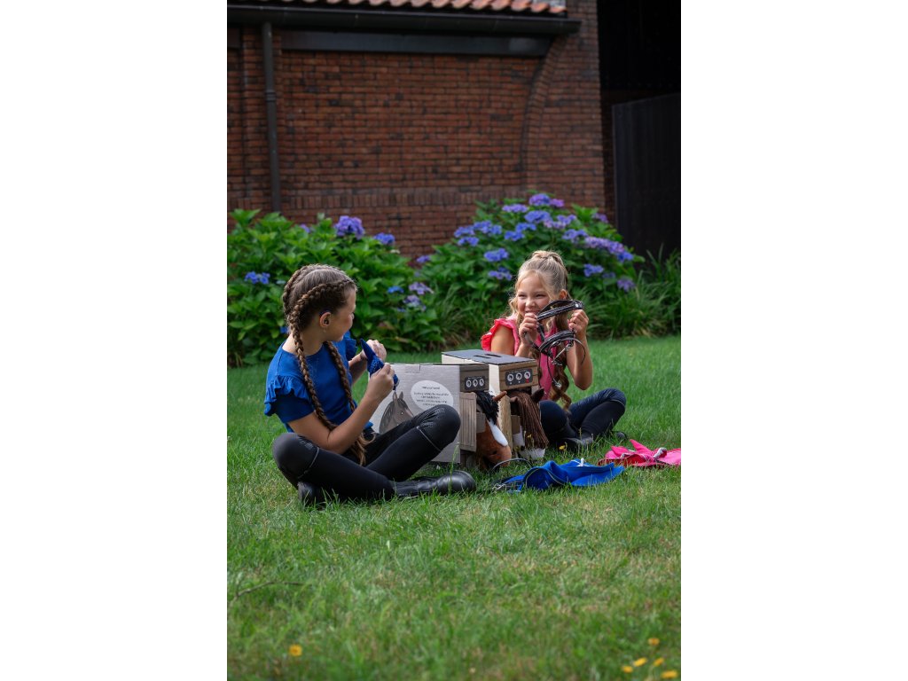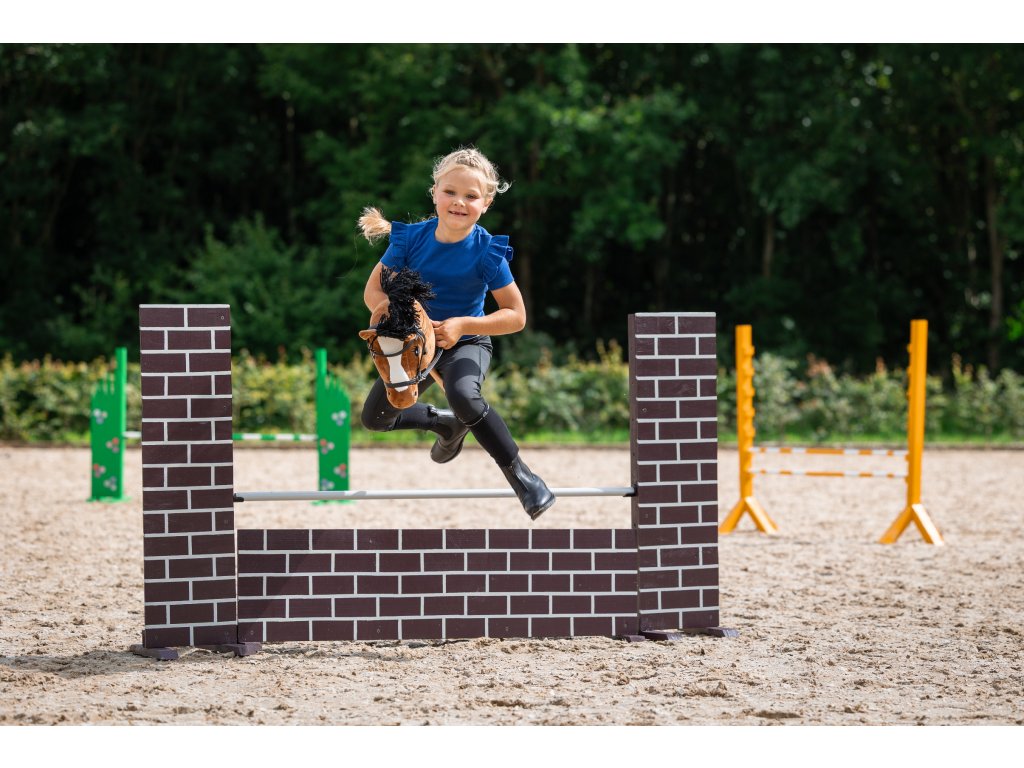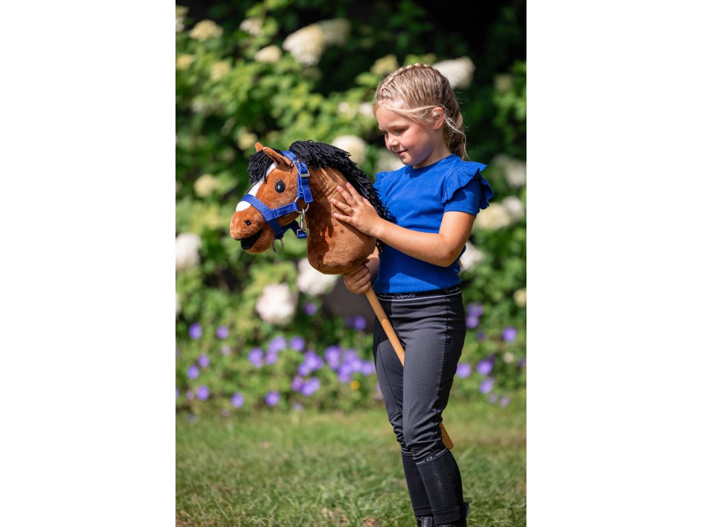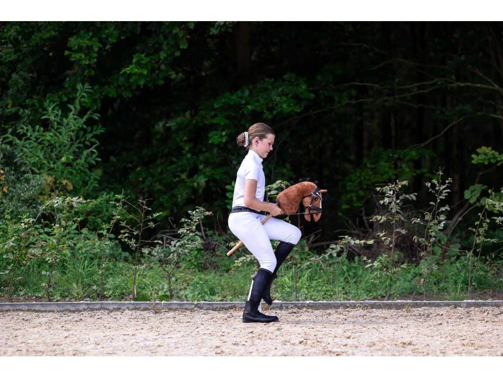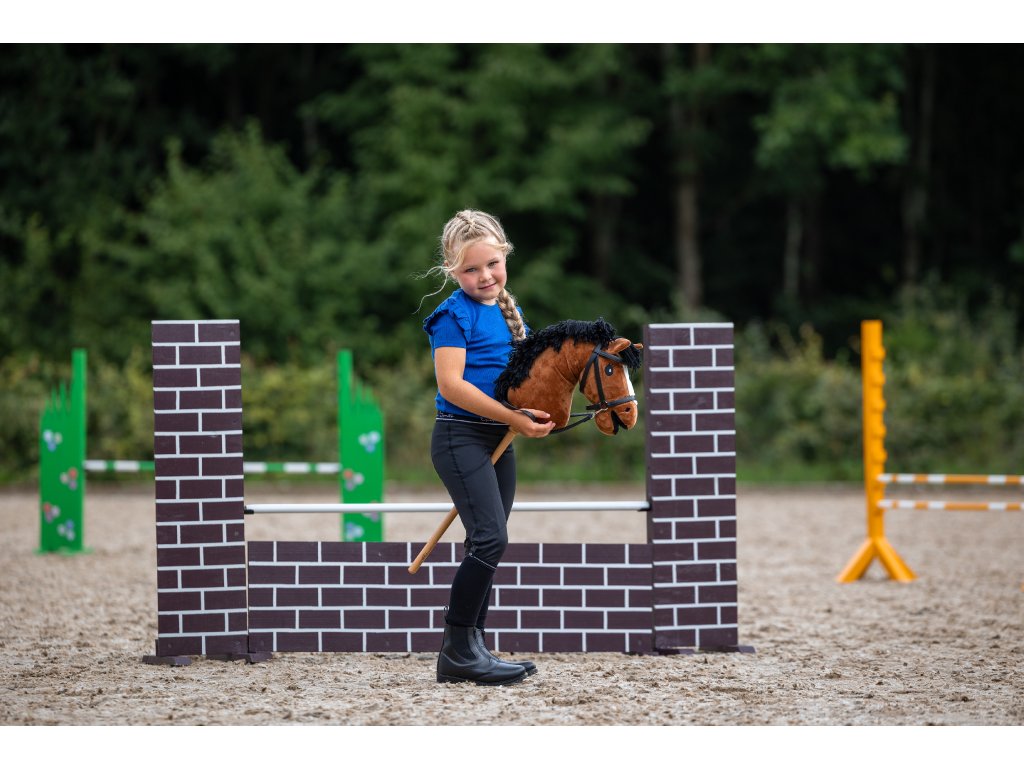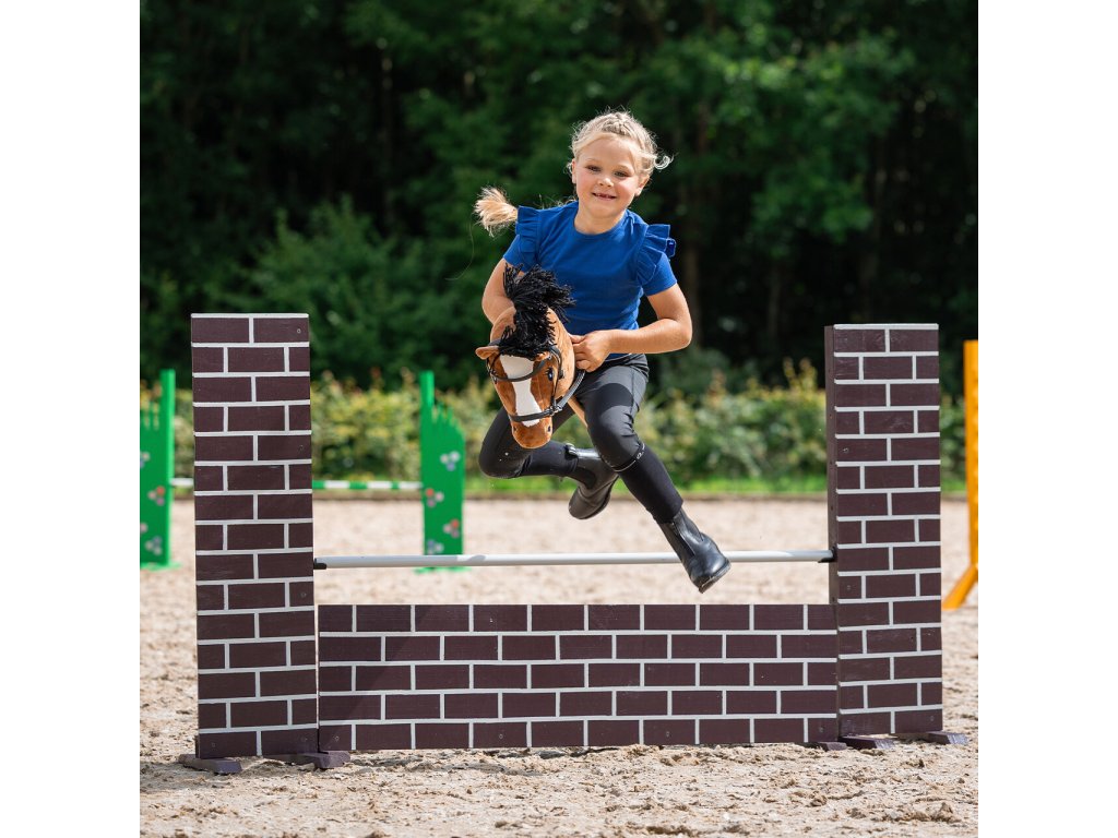 Hobby horse to idealny wybór dla wszystkich małych miłośników koni. Koń jest wykonany z miękkiego materiału z piękną grzywą. Akcesoria można dokupić do hobby horse (nauszniki, kantar, ogłowie lub derka polarowa). Odłączany drewniany kij jest dołączony. Hobby horse jest dostarczany w papierowym opakowaniu, które służy jako przenośna stajnia. Całkowita wysokość hobby horse: 90 cm.