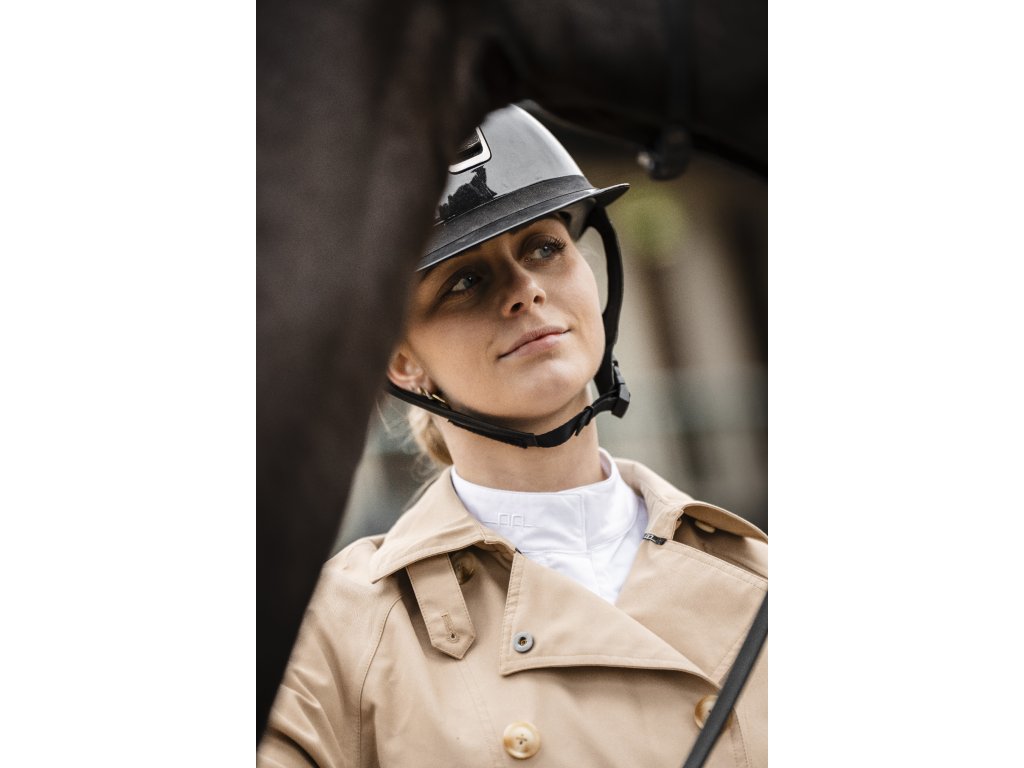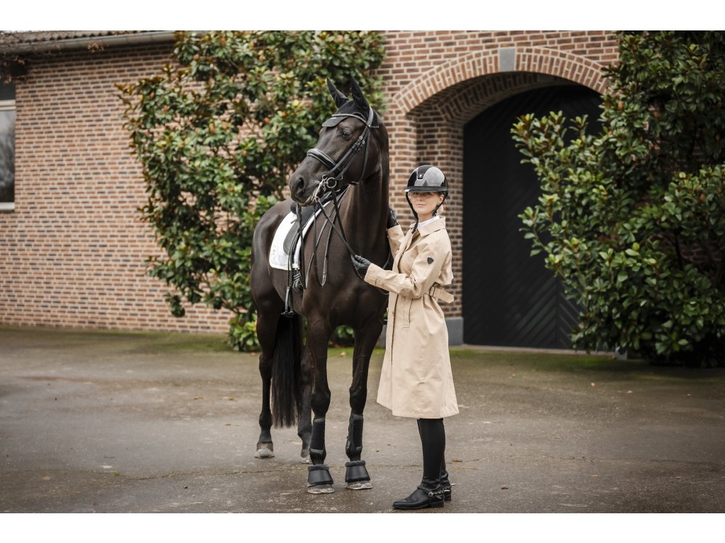 Płaszcz jeździecki Isabella dla kobiet łączy funkcjonalność ze stylem, zarówno w stajni, jak i poza nią. Wykonany z wytrzymałego poliestru Peached Twill Bonded Tricot z wykończeniem DWR, dzięki czemu jest w pełni wodoodporny i wiatroszczelny. Płaszcz oferuje przemyślane detale zapewniające maksymalny komfort podczas jazdy, takie jak rozcięcie z tyłu, elastyczne paski do mocowania wokół ud, tylny panel z siateczki zapewniający wentylację oraz ściągacz do regulacji dopasowania. Dodatkowo posiada odpinany i regulowany kaptur, praktyczne D-ringi do mocowania sprzętu stajennego oraz eleganckie guziki z magnesami i zamkami błyskawicznymi ułatwiające zakładanie i zdejmowanie.