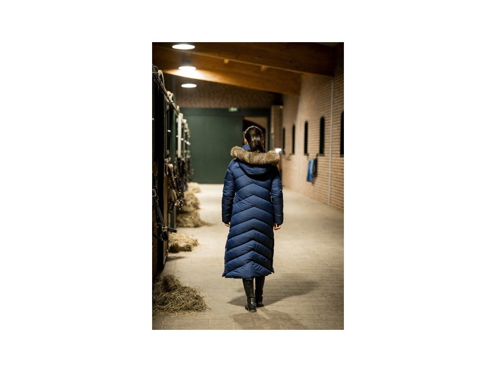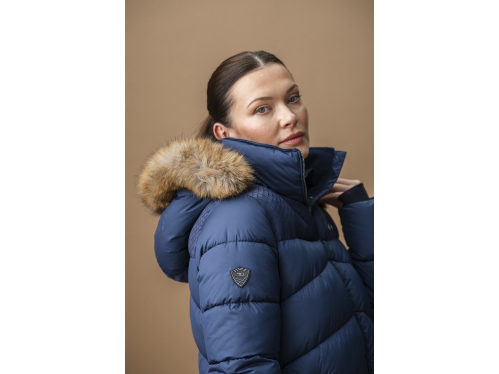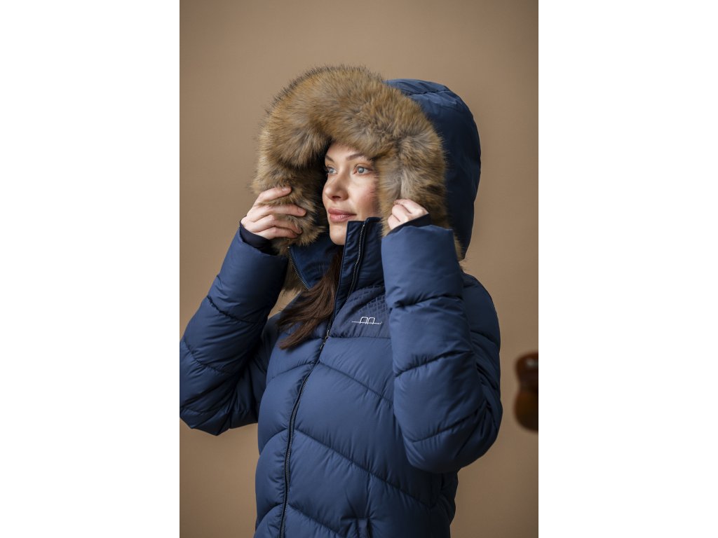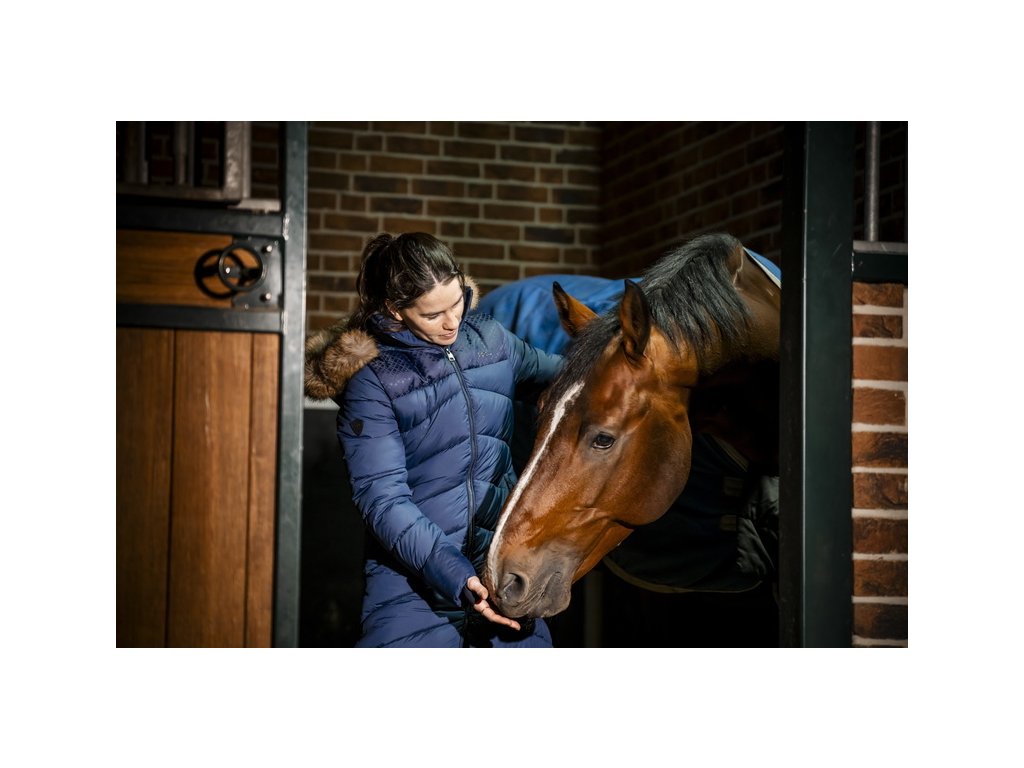 Zimowy płaszcz jeździecki Nivia dla kobiet został zaprojektowany, aby zapewnić Ci ciepło podczas jazdy i pracy w stajni. Wytrzymały, zewnętrzny materiał ripstop z powłoką powierzchniową chroni przed wodą, wiatrem, promieniowaniem UV i brudem, zapewniając długą żywotność i codzienny komfort. Wypełnienie wykonane jest z przetworzonego ocieplenia 3M™ Thinsulate™ Featherless, które zapewnia ciepło bez zbędnej objętości. Płaszcz posiada dwie zewnętrzne kieszenie zapinane na zamek, jedną wewnętrzną kieszeń zapinaną na zamek oraz stylowe panele nylonowe z logo producenta, które dodają elegancji. Kaptur i obszycie z futra są odpinane. Aksamitna podszewka kołnierza zapewnia wyjątkowy komfort noszenia.
