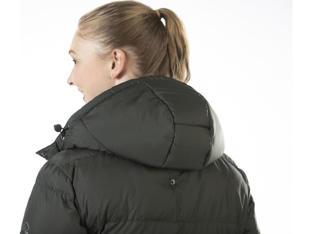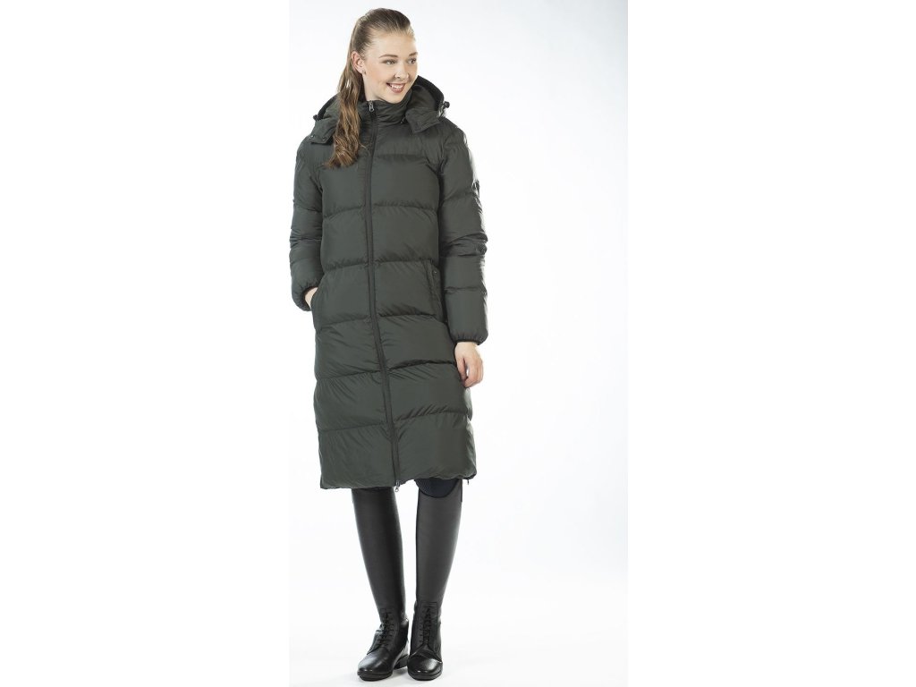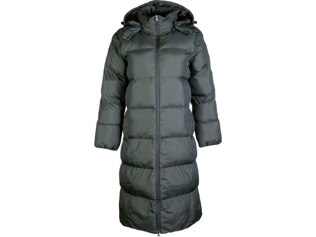 Bardzo długi płaszcz odpowiedni do jazdy konnej i noszenia na co dzień. Posiada odpinany kaptur, dwie praktyczne kieszenie na zamek i dwukierunkowe zapięcie na zamek. Posiada paski wokół ud i rozcięcie z tyłu zapinane na zamek. Rozcięcie zapewnia maksymalny komfort podczas jazdy. Małe logo HKM na ramieniu wraz z przeszyciami nadaje płaszczowi elegancki wygląd. Płaszcz jest również dostępny w kolorze szarym i niebieskim.