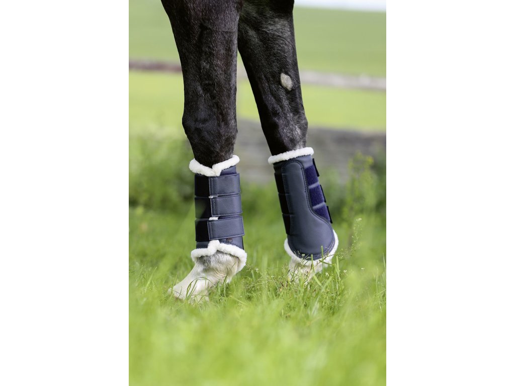 Wysokiej jakości ochraniacze wyściełane miękką imitacją owczej skóry. Wewnętrzna wyściółka wykonana z miękkiego materiału softoprenowego. Zewnętrzny, wytrzymały materiał doskonale imituje skórę naturalną. Ochraniacze mogą być używane na przednich i tylnych nogach lub jako ochraniacze ujeżdżeniowe. Można prać w pralce w temperaturze 30°C, zaleca się zapięcie rzepów przed praniem. Można suszyć w suszarce bębnowej. Dostarczane w parach.