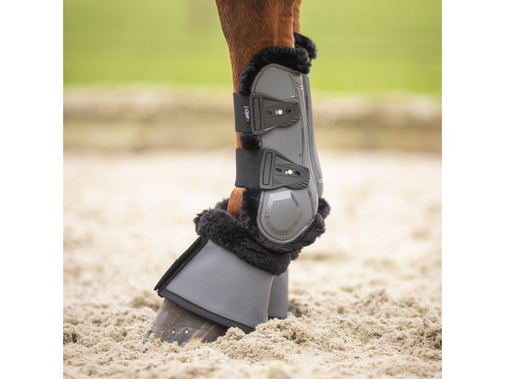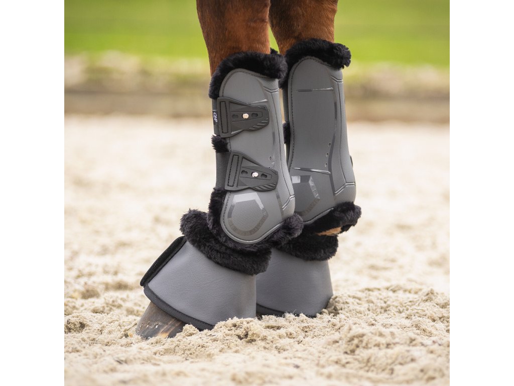 Para anatomicznie wyprofilowanych ochraniaczy na ścięgna przednie z elastycznymi końcówkami do szybkiego rozpinania. Wewnętrzna część składa się z miękkiej neoprenowej wyściółki ze sztucznym futrem owczym, która zapobiega otarciom i jest idealna dla wrażliwych koni. Zintegrowane otwory wentylacyjne wspomagają cyrkulację powietrza i skutecznie odprowadzają ciepło i wilgoć. Podana cena dotyczy pary.