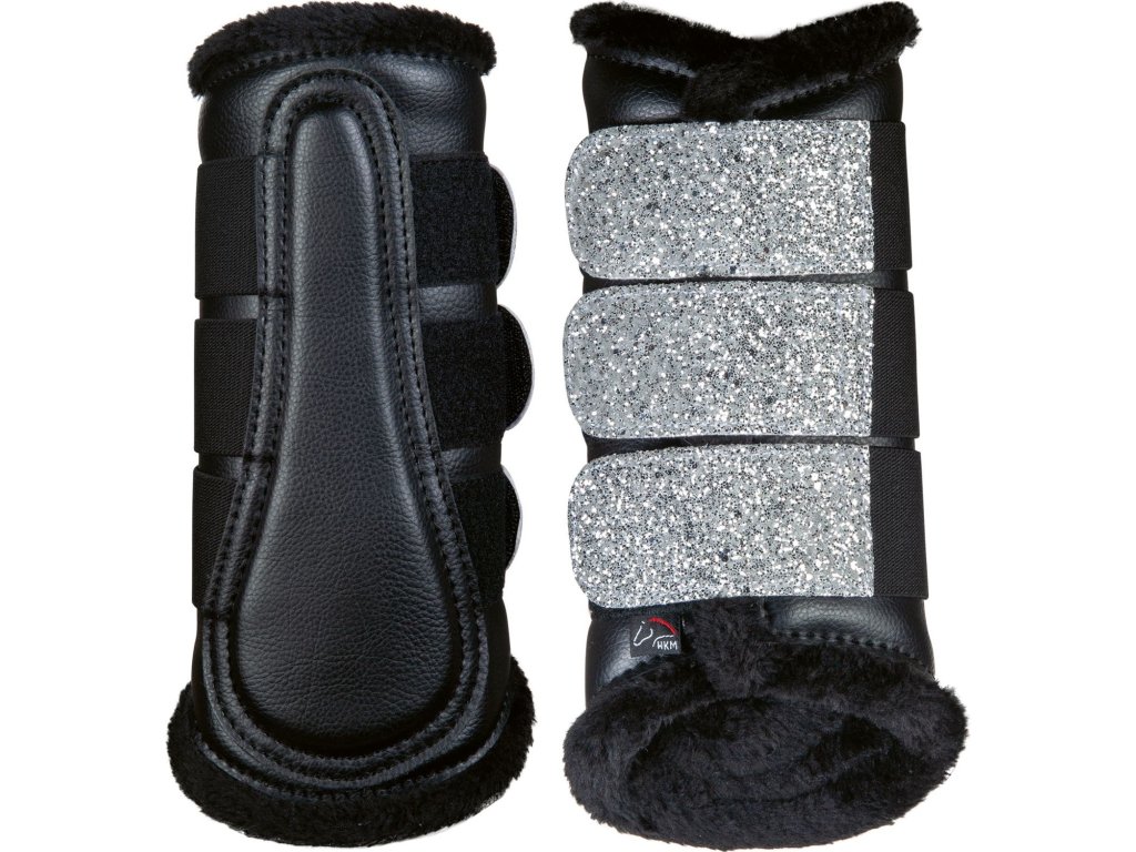 Eleganckie uniwersalne ochraniacze brushing boots podszyte syntetycznym futrem owczym. Ozdobione brokatem na zapięciu. Ochraniacze mogą być używane na przednich i tylnych nogach lub jako ochraniacze ujeżdżeniowe. Można prać w pralce w temperaturze 30°C, zaleca się zapięcie rzepów przed praniem. Można suszyć w suszarce bębnowej. Dostarczane w parach.