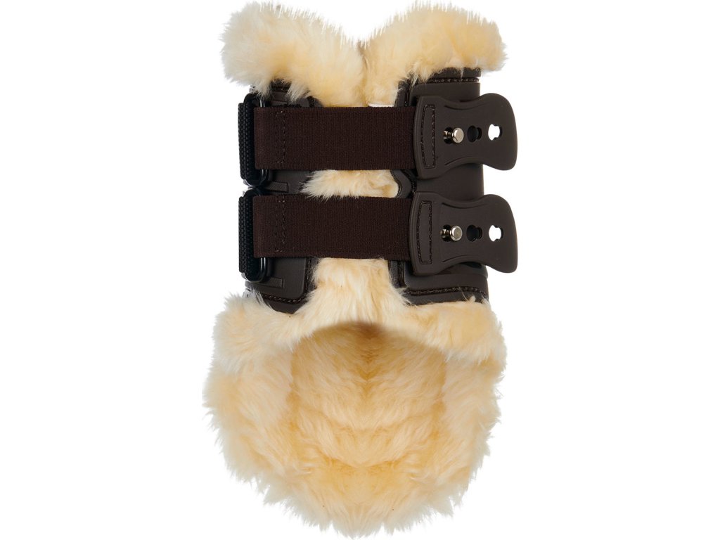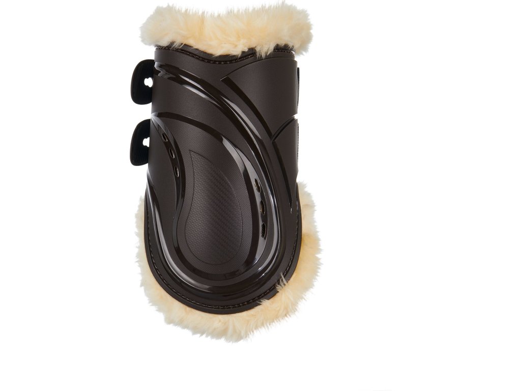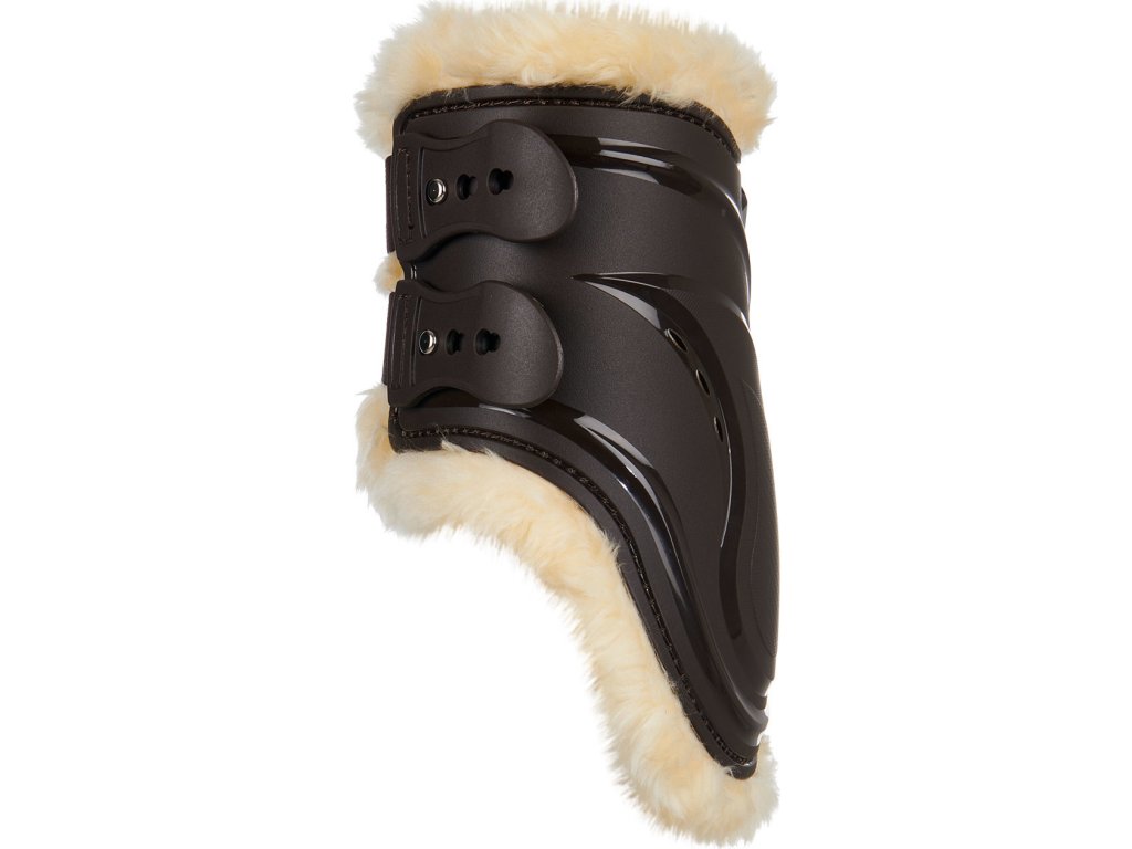Najwyższej jakości anatomicznie ukształtowane ochraniacze na tylne nogi. Wykonane z bardzo wytrzymałego, wysokiej jakości tworzywa sztucznego. Miękka, syntetyczna wyściółka z jagnięcej skóry zwiększa komfort konia i zapobiega otarciom nóg, zapewniając wysoką oddychalność. Bardzo wygodne i proste zapięcie bagnetowe. Dostępne również w kolorze czarnym.
