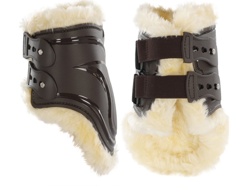 Ochraniacze na tylne pęciny New Evolution Equestro, ze skórą jagnięcą, para, brązowe