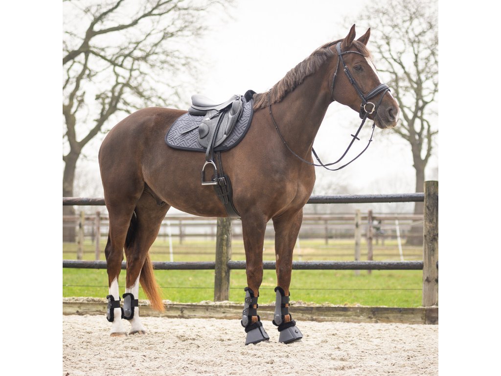 Para anatomicznie ukształtowanych ochraniaczy na pęciny z elastycznymi zapięciami szybkiego zwalniania. Wewnętrzna część składa się z miękkiej neoprenowej wyściółki ze sztucznym futrem owczym, która zapobiega otarciom i jest idealna dla wrażliwych koni. Zintegrowane otwory wentylacyjne wspomagają cyrkulację powietrza i skutecznie odprowadzają ciepło i wilgoć. Podana cena dotyczy pary.