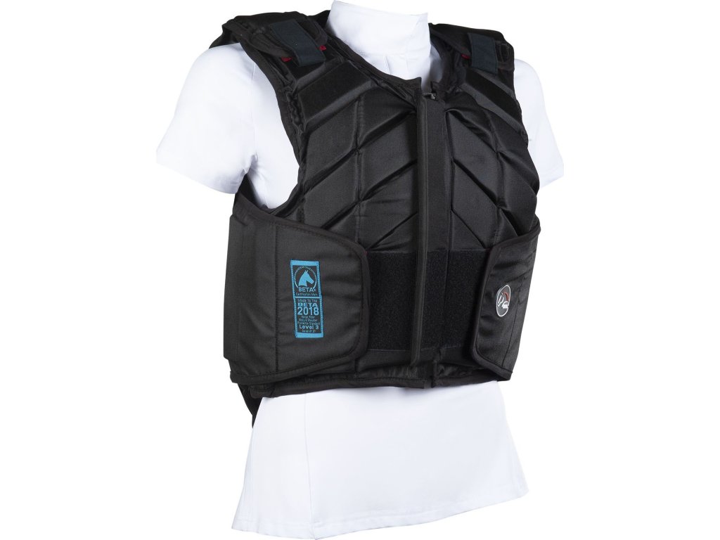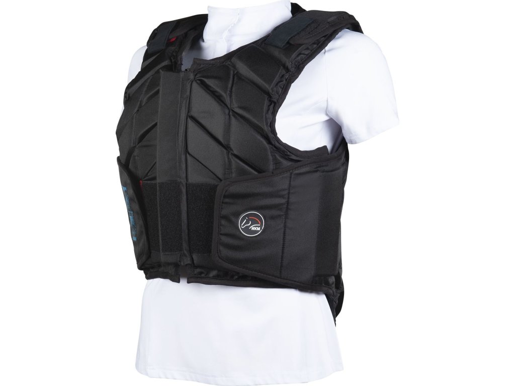Wysokiej jakości kamizelka ochronna firmy HKM, którą można indywidualnie dopasować za pomocą zapięć na rzepy w okolicy ramion i talii, co jest ważne dla właściwej ochrony. Wyposażona w przednie zapięcie na zamek błyskawiczny, które jest chronione rzepem. Kamizelka idealnie leży i zapewnia komfort noszenia. Wykonana z poliestru. Kamizelka ochronna spełnia aktualną normę bezpieczeństwa EN 13158-2018, LEVEL 3. Dostępna w kolorze czarnym oraz w rozmiarach dla dzieci i dorosłych.