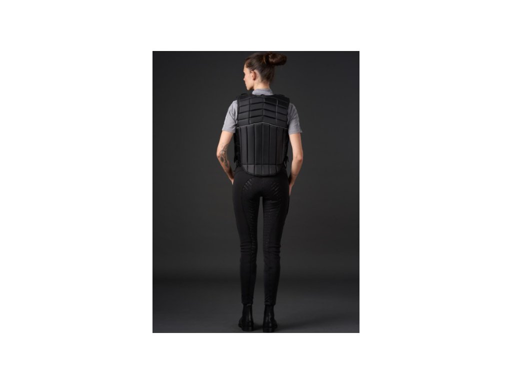 Kamizelka ochronna z elementami odblaskowymi.Kamizelkę można indywidualnie dopasować za pomocą zapięć na rzepy w okolicy ramion i sznurowania w pasie. Klasyczne przednie zapięcie na zamek błyskawiczny. Kamizelka ma ergonomiczny kształt zapewniający doskonały komfort noszenia. Wykonana jest z lekkiej specjalnej pianki i łatwego do czyszczenia nylonu. System blokowej struktury z amortyzującymi panelami z pianki dopasowuje się do ciała. Kamizelka ochronna spełnia aktualnie obowiązującą normę bezpieczeństwa CE EN 13158-2018, POZIOM 3.