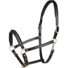 Wysokiej jakości skórzany kantar z serii S-line z miękko wyściełanym nachrapnikiem i paskiem potylicznym. Kantar jest regulowany na nachrapniku i po obu stronach paska potylicznego i można go łatwo dopasować do żądanego rozmiaru. Wyposażony w wysokiej jakości okucia w kolorze złotym. Dostępne również w kolorze czarnym.