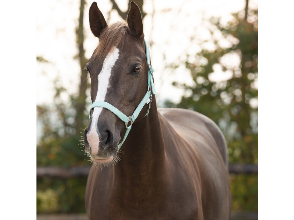 Wysokiej jakości i regulowany nylonowy kantar, dostępny w wielu kolorach i rozmiarach. Okucia wykonane są z cynku i stali. Kantar można regulować za pomocą przesuwanej żelaznej klamry. Rozmiar Extra FULL jest również dostępny w kolorze czarnym i ciemnoniebieskim.