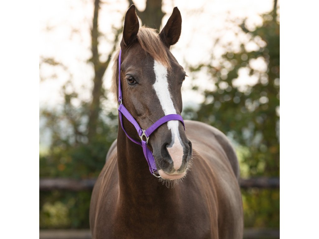 Wysokiej jakości i regulowany nylonowy kantar, dostępny w wielu kolorach i rozmiarach. Okucia wykonane są z cynku i stali. Kantar można regulować za pomocą przesuwanej żelaznej klamry. Rozmiar Extra FULL jest również dostępny w kolorze czarnym i ciemnoniebieskim.