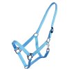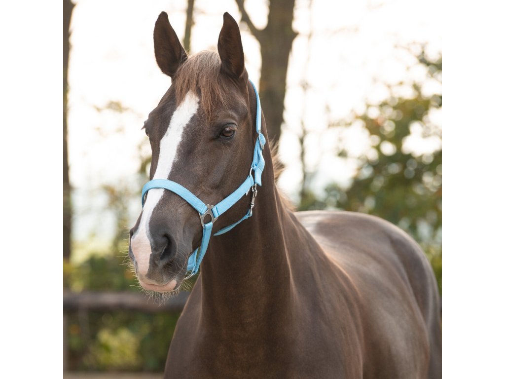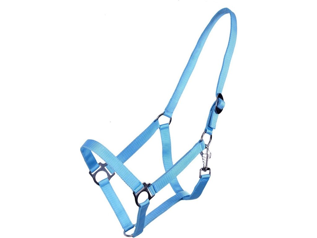 Wysokiej jakości, regulowany nylonowy kantar, dostępny w wielu kolorach i rozmiarach. Okucia wykonane są z cynku i stali. Kantar można regulować za pomocą przesuwnego żelaznego klipsa. Rozmiar Extra FULL jest również dostępny w kolorach czarnym i granatowym .
