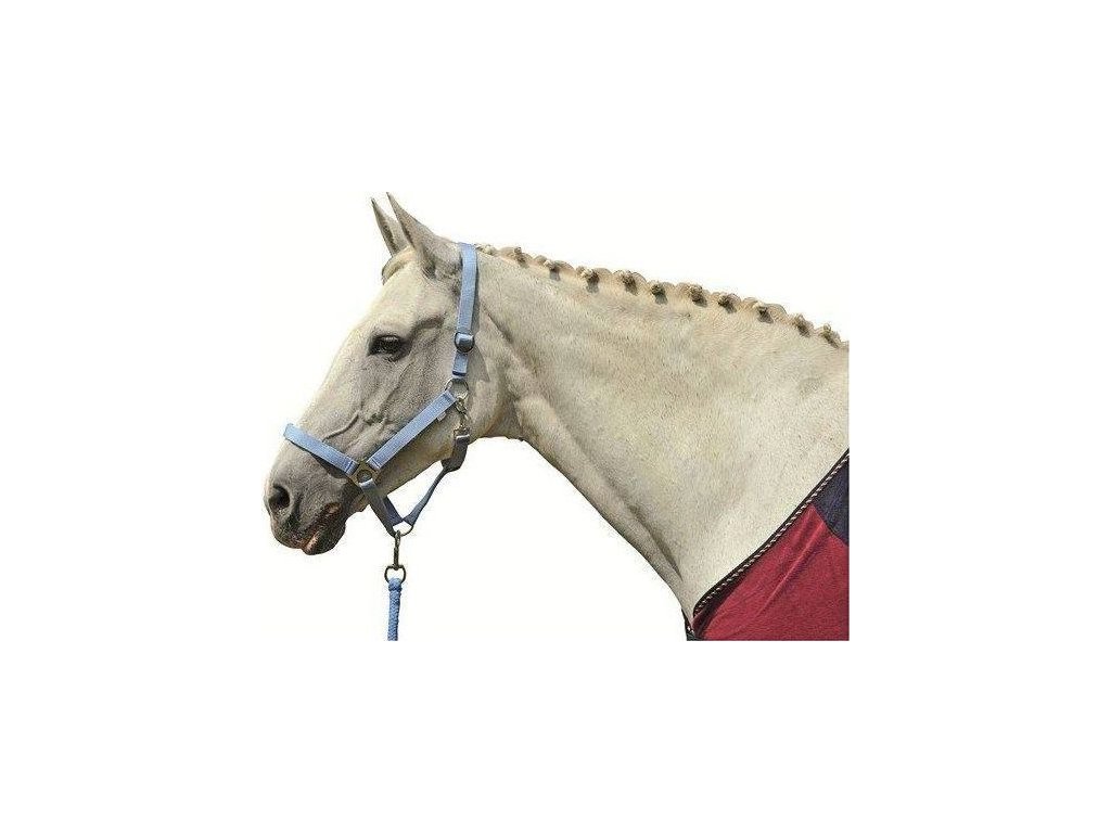 Regulowany nylonowy kantar dostępny w różnych kolorach i rozmiarach. Kantar można regulować za pomocą przesuwanej sprzączki. Zapięcie na karabińczyk.