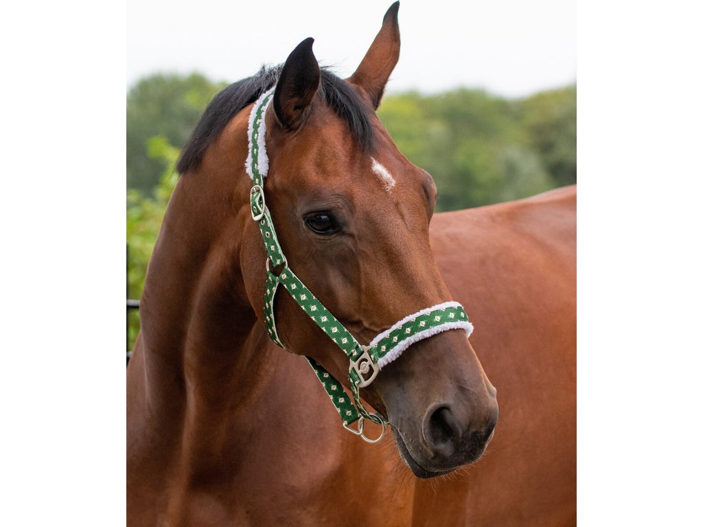 Bardzo wysokiej jakości kantar z motywem świątecznym. Wyposażony w miękkie podszycie ze sztucznego futra na pasku potylicznym i nachrapniku. Okucia wykonane są z wytrzymałej stali nierdzewnej z wygrawerowanym logo QHP. Kantar idealnie pasuje do innych produktów z kolekcji świątecznej.