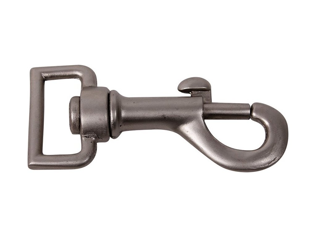 Karabińczyk obrotowy z cynku, odpowiedni do stosowania w derkach i kantarach.