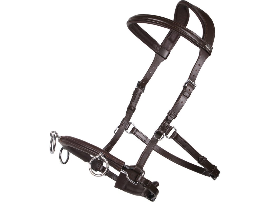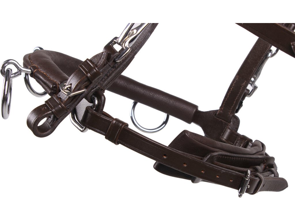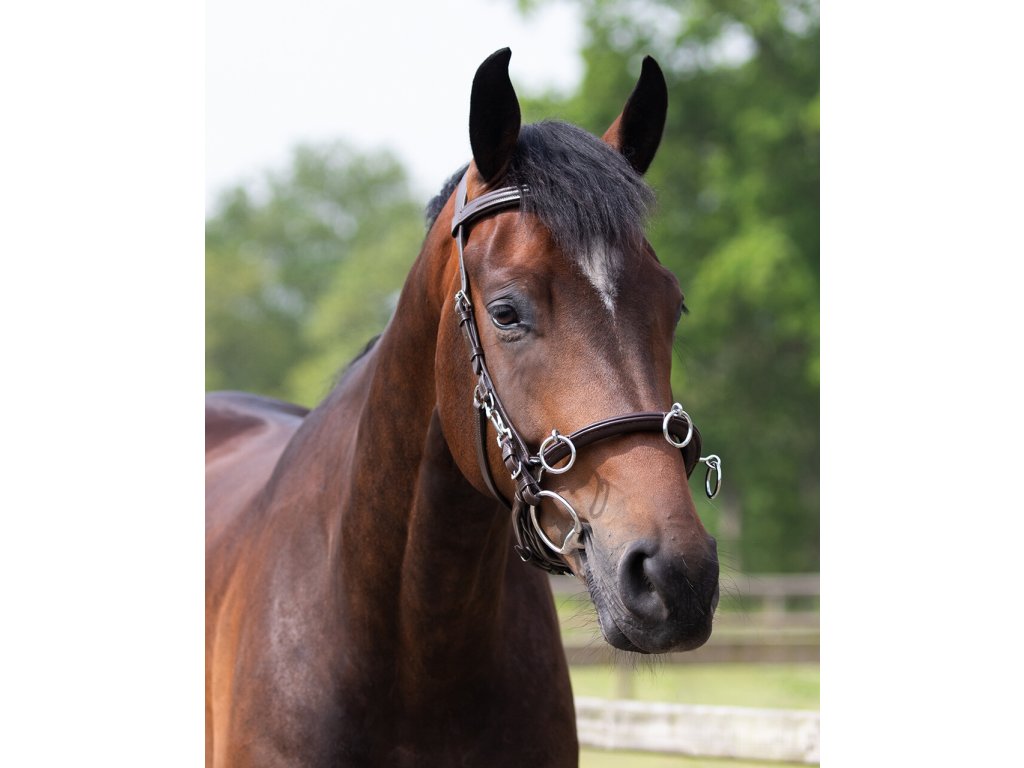 Wielofunkcyjny, bardzo praktyczny kawecan i ogłowie w jednym. Kawecan może być używany z wędzidłem lub bez dzięki praktycznym łącznikom dołączonym do zestawu. Wykonany z wysokiej jakości miękkiej skóry. Wyposażony w trzy kółka na nachrapniku i łańcuszek wewnątrz, oferujący maksymalną regulację. Anatomiczny pasek potyliczny zmniejsza nacisk w okolicy uszu i zapewnia maksymalny komfort.