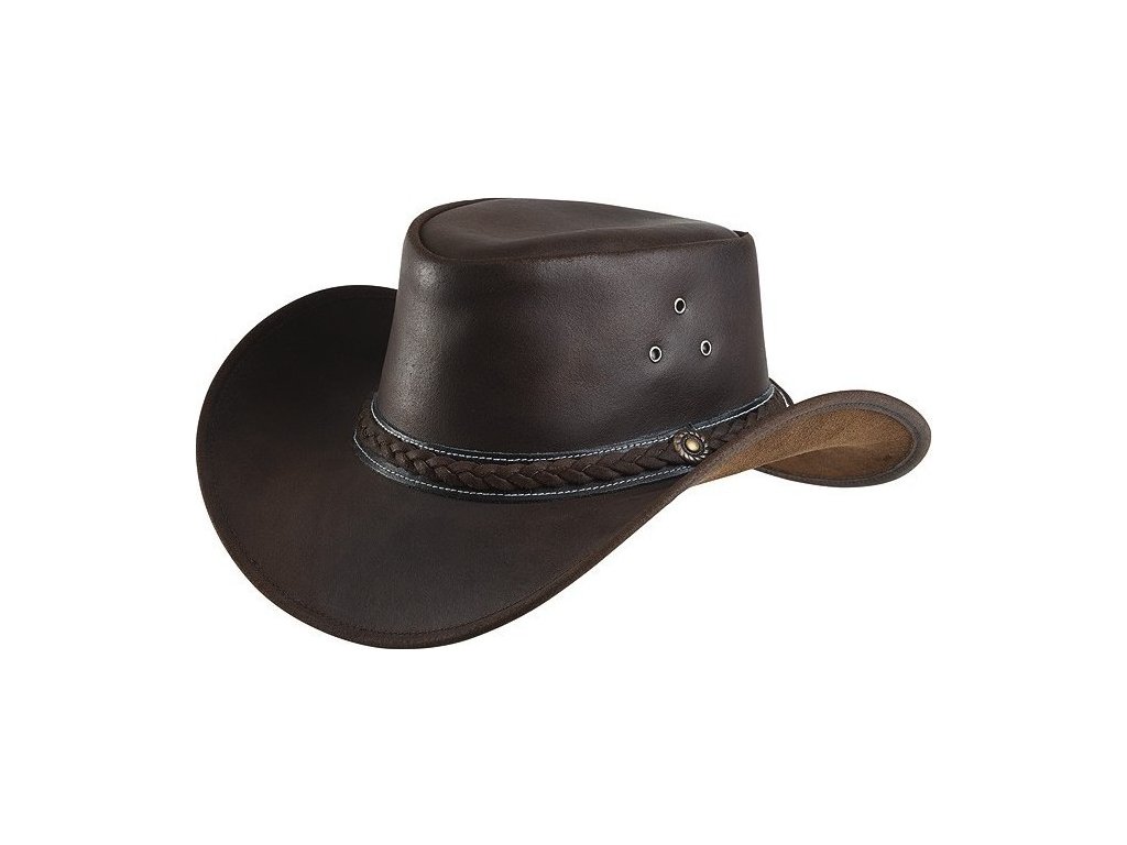 Kapelusz kowbojski wykonany z wytrzymałej, olejowanej i wodoodpornej skóry bydlęcej dwoinowej. Posiada praktyczne otwory wentylacyjne i miękką krawędź, którą łatwo nadać pożądany kształt. Krawędź wyposażona jest w drut pamięciowy, który pomaga utrzymać kapelusz w odpowiednim kształcie. Kapelusz jest dodatkowo ozdobiony plecioną taśmą wykonaną z tego samego materiału. W zestawie znajduje się również regulowany, elastyczny pasek podbródkowy z PVC.