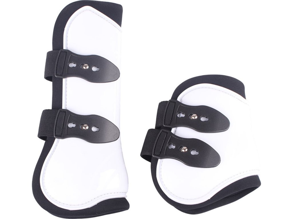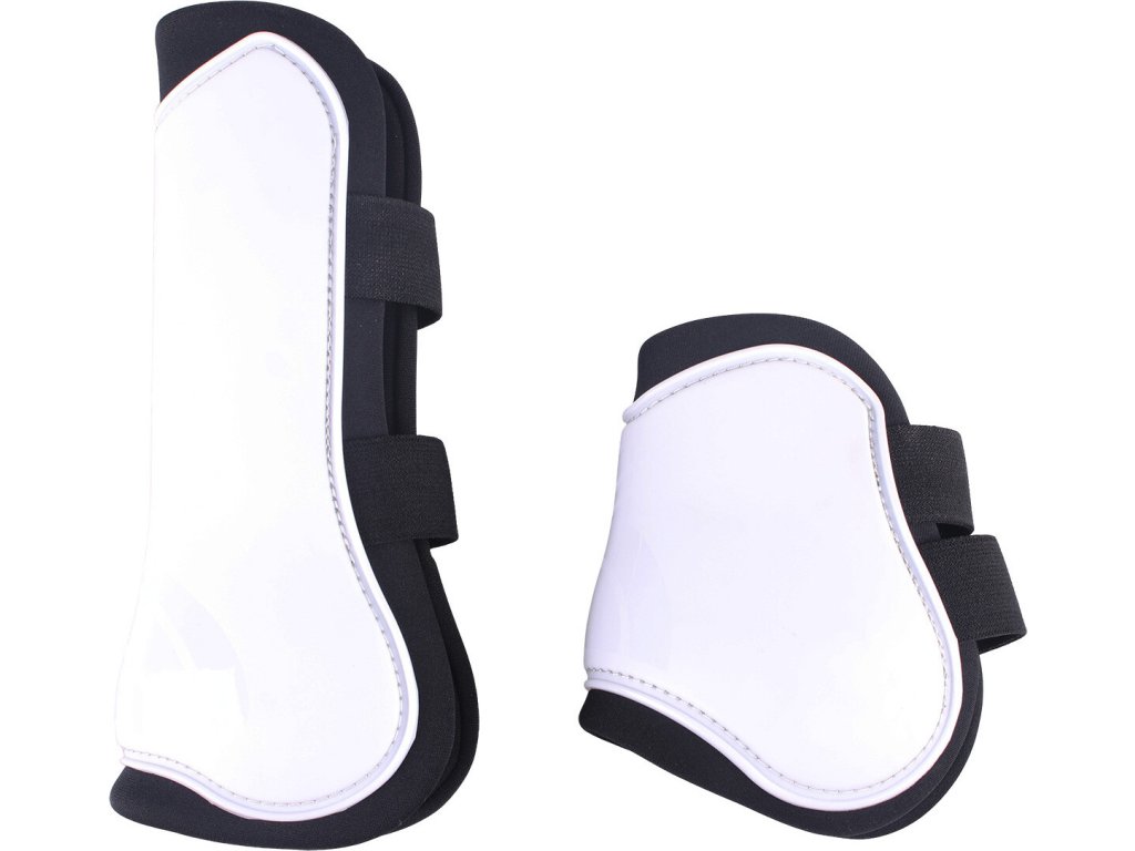 Zestaw ochraniaczy na ścięgna i ochraniaczy na pęciny, które chronią nogi konia przed uderzeniami i urazami. Wykonane z wysokiej jakości plastikowych skorup i neoprenowej wyściółki. Wyposażone w dwa elastyczne paski dla szybkiego i łatwego zapinania. Dostępny w wielu opcjach kolorystycznych.