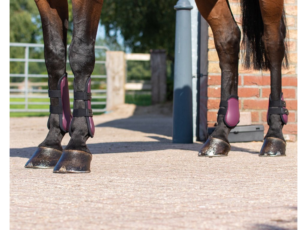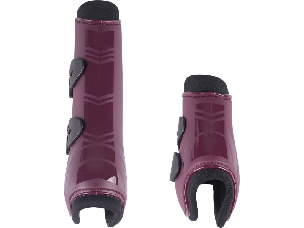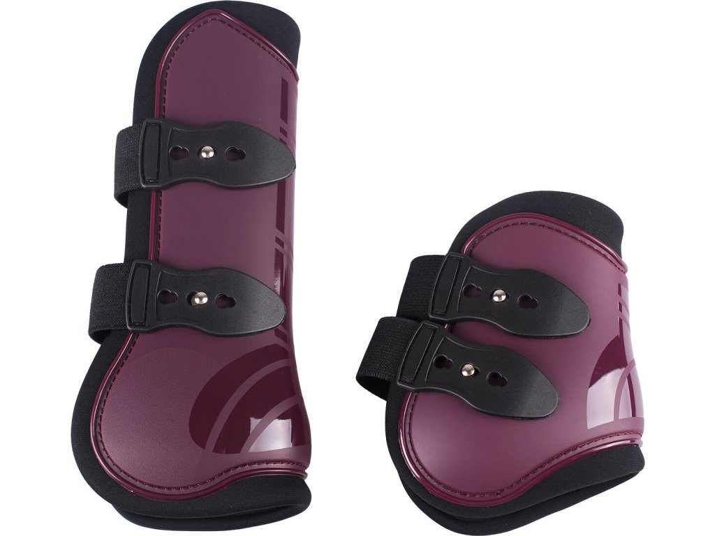 Zestaw ochraniaczy na ścięgna i ochraniaczy na pęciny, które chronią nogi konia przed uderzeniami i urazami. Wykonane z wysokiej jakości plastikowych skorup i neoprenowej wyściółki. Wyposażone w dwa elastyczne paski dla szybkiego i łatwego zapinania. Dostępny w wielu opcjach kolorystycznych.