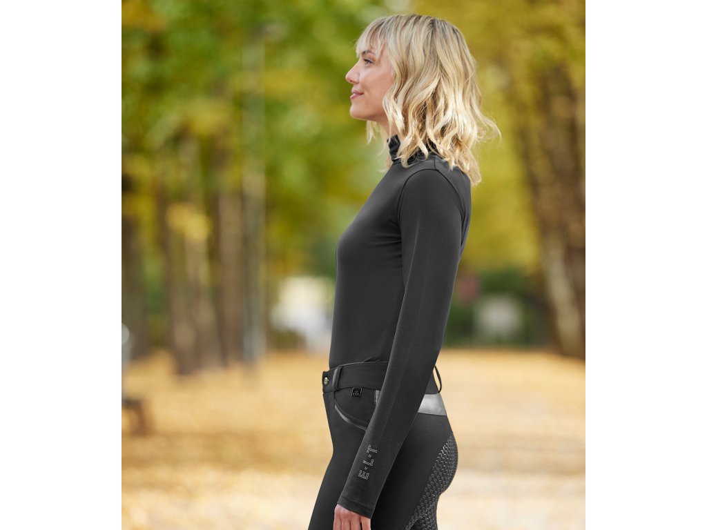 Damska bluzka z golfem wykonana z oddychającego materiału funkcjonalnego zapewnia komfort i swobodę ruchów podczas wszystkich aktywności.Krój slim fit podkreśla figurę. Kołnierz jest ozdobiony nadrukiem z logo E·L·T, a rękawy są elegancko uzupełnione napisem z logo z dżetów.