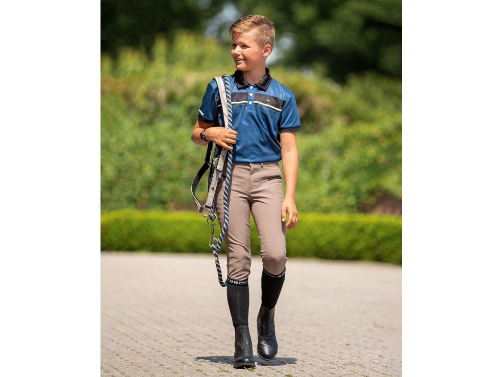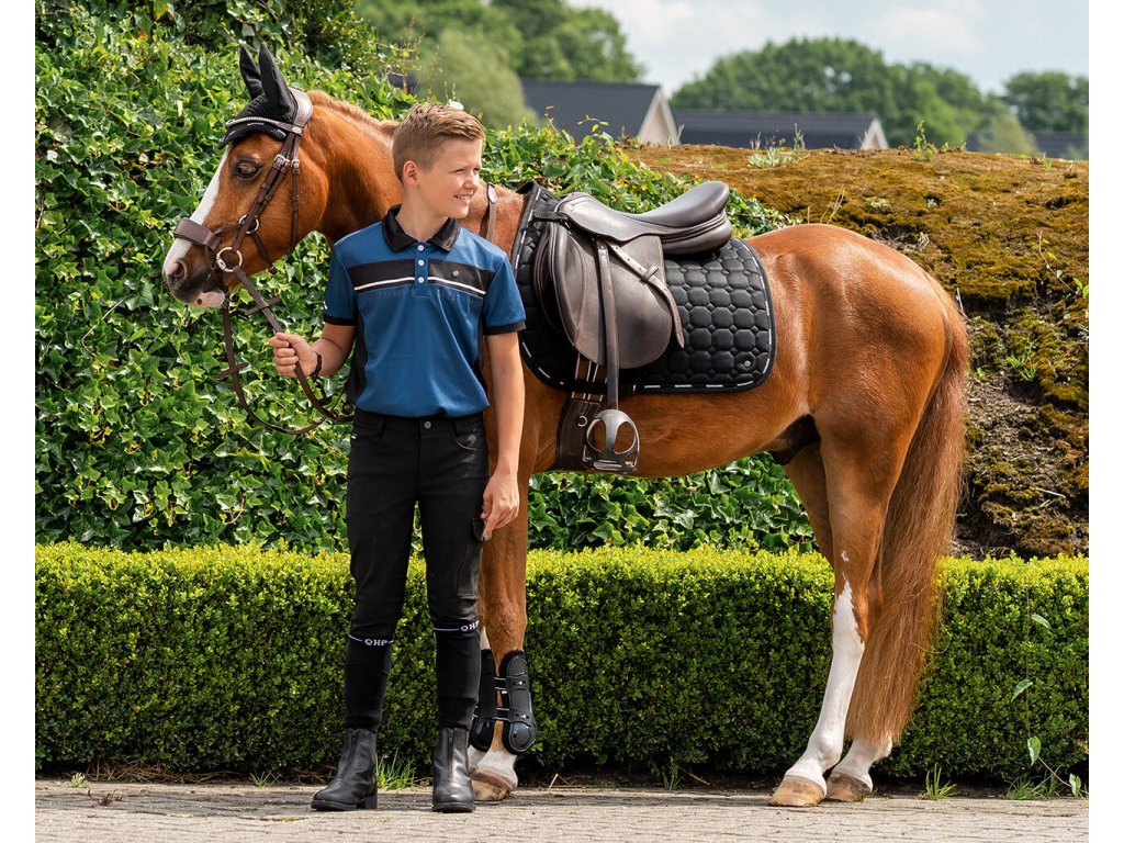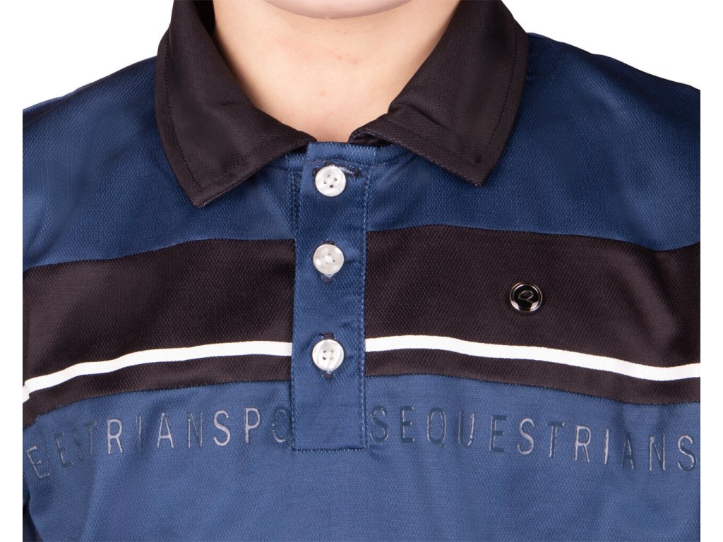 Wysokiej jakości dziecięca koszulka sportowa odpowiednia na letnią pogodę. Wyposażona w siatkę po bokach, która jest wysoce oddychająca i zapewnia komfort. Ozdobiona napisem "Equestrian Sports" z przodu i małym logo Q na piersi. Połączenie koloru niebieskiego i czarnego nadaje sportowy wygląd. Dostępna również w rozmiarach dla dorosłych. Część kolekcji wiosna/lato 2023.