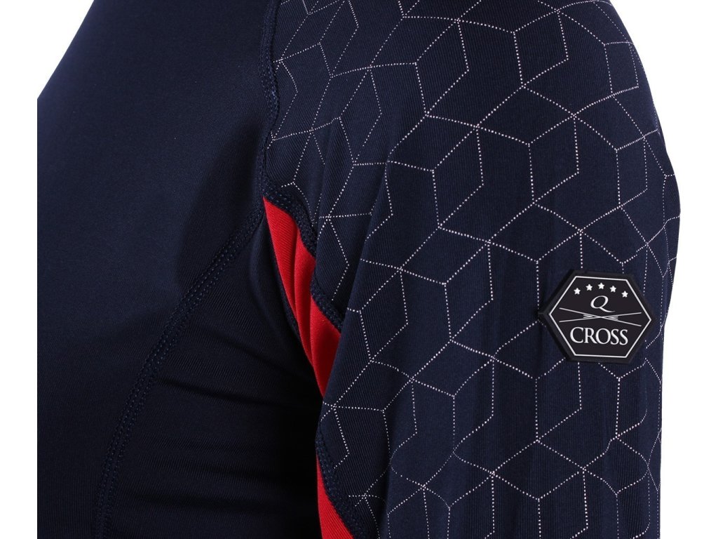 Sportowy T-shirt idealnie nadaje się zarówno do noszenia na co dzień, jak i do treningów lub zawodów. T-shirt jest wykonany z oddychającego materiału i wykończony geometrycznym wzorem w kontrastowym kolorze na ramionach. Koszulka ma naszywkę Q-Cross na lewym rękawie. T-shirt jest częścią kolekcji Q-Cross.