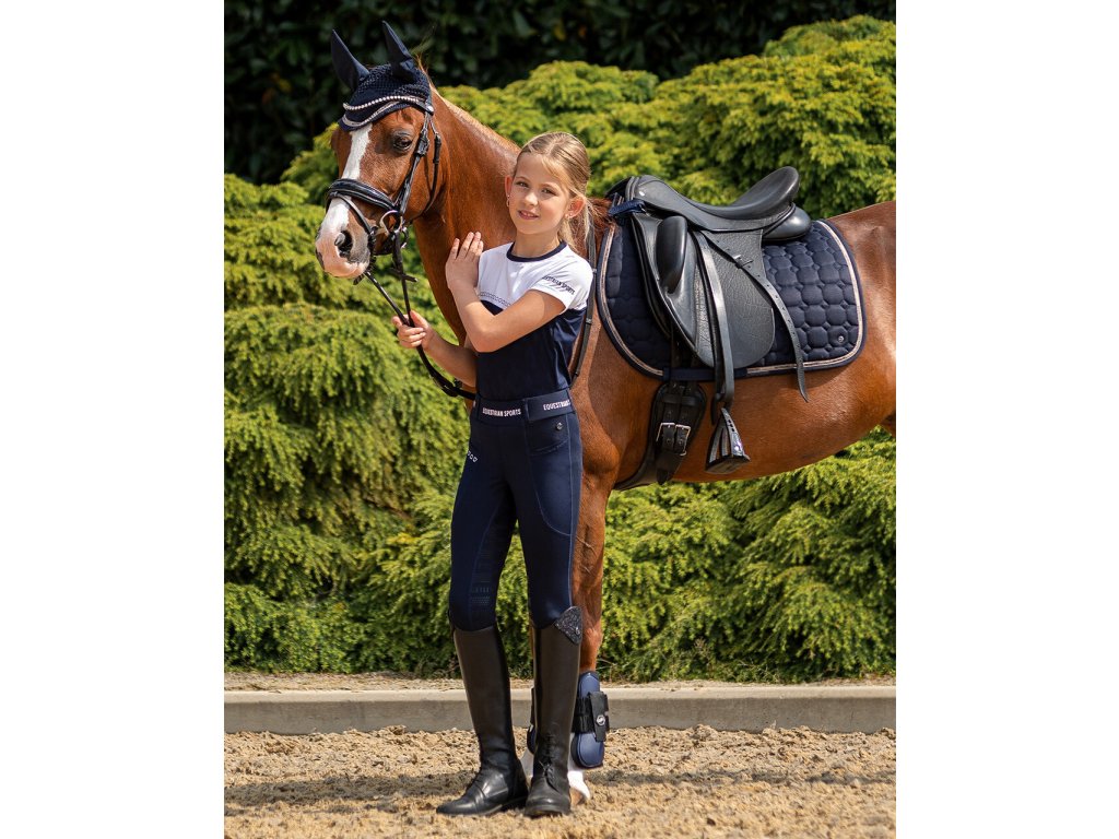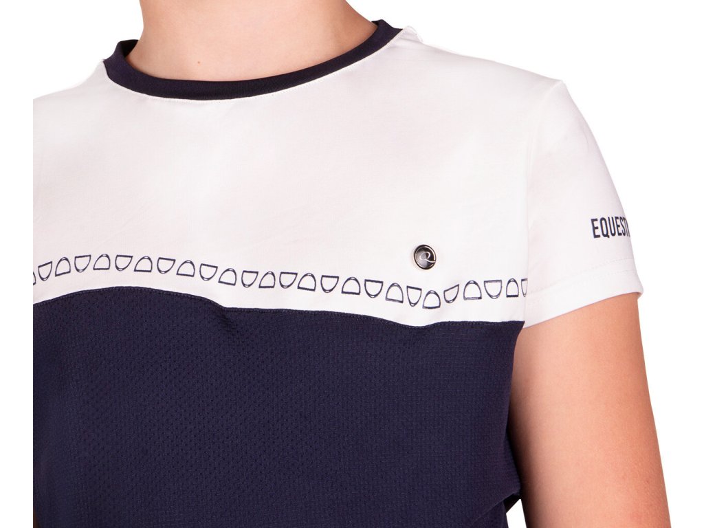 Wysokiej jakości koszulka dziecięca wykonana z szybkoschnącego materiału. Wyposażona w maksymalnie oddychającą tkaninę siatkową, dzięki czemu koszulka idealnie nadaje się na ciepłe, letnie dni. Ozdobiona napisem "Equestrian Sports" na lewym ramieniu i małym emblematem Q na piersi. Dwukolorowy design nadaje T-shirtowi sportowy wygląd. Dostępna również w kolorze różowym oraz w rozmiarach dla dorosłych.Część kolekcji wiosna/lato 2023.