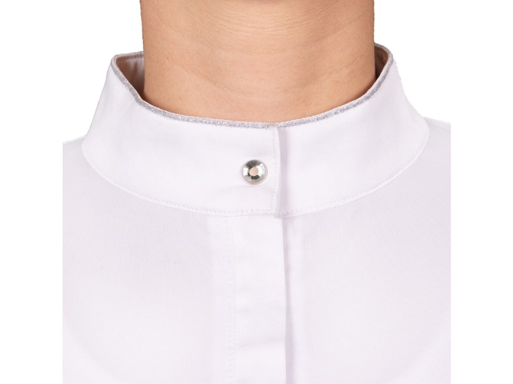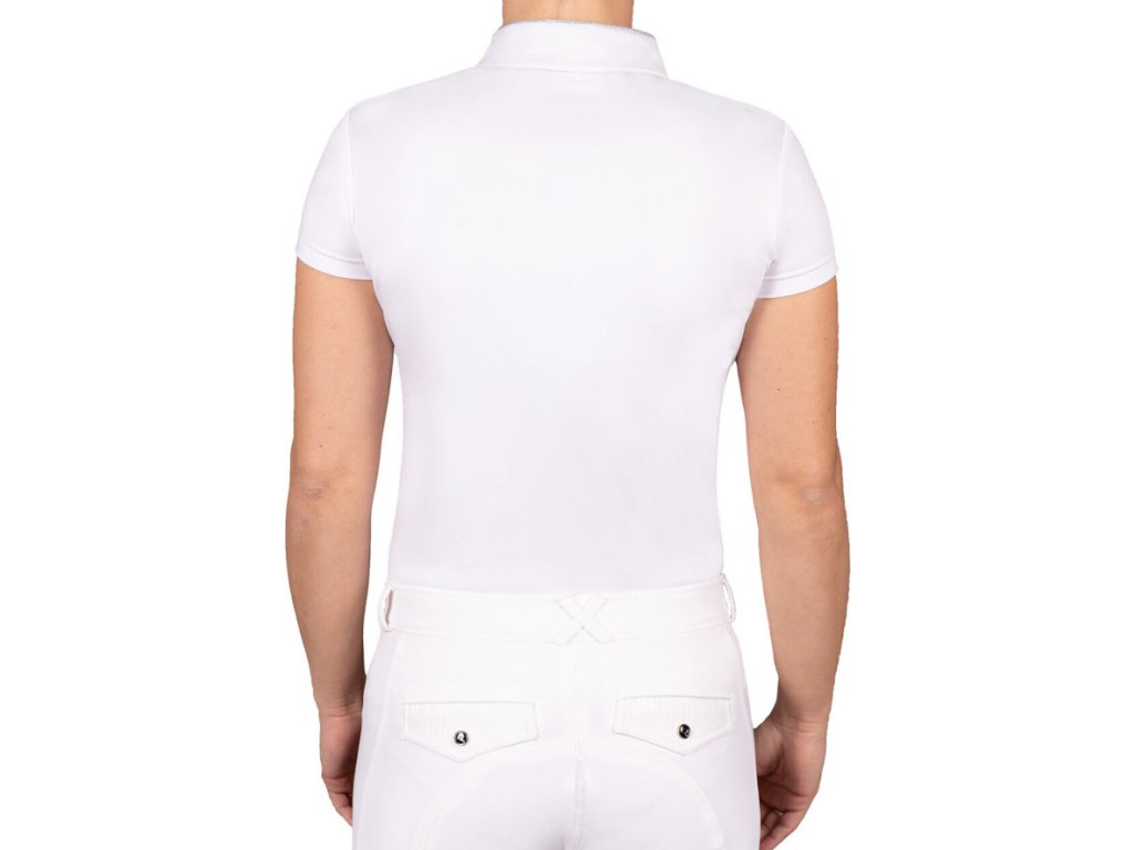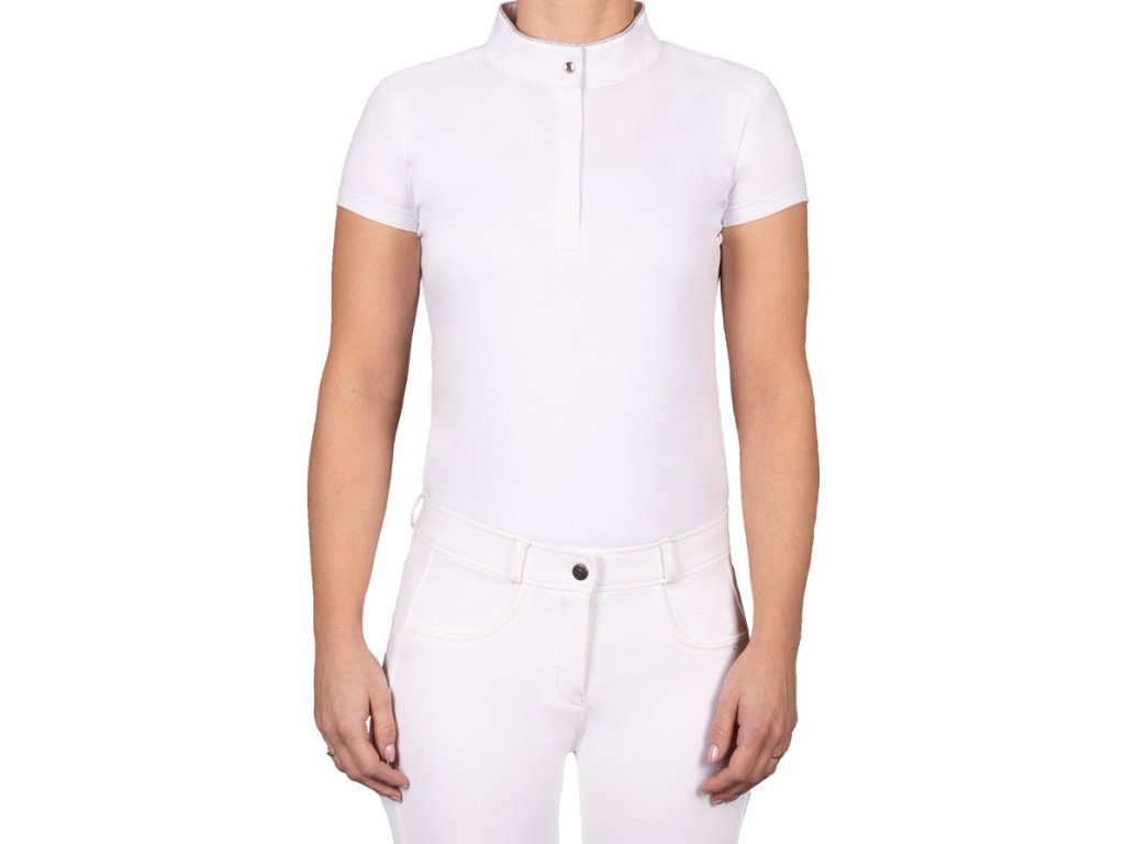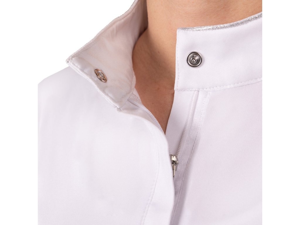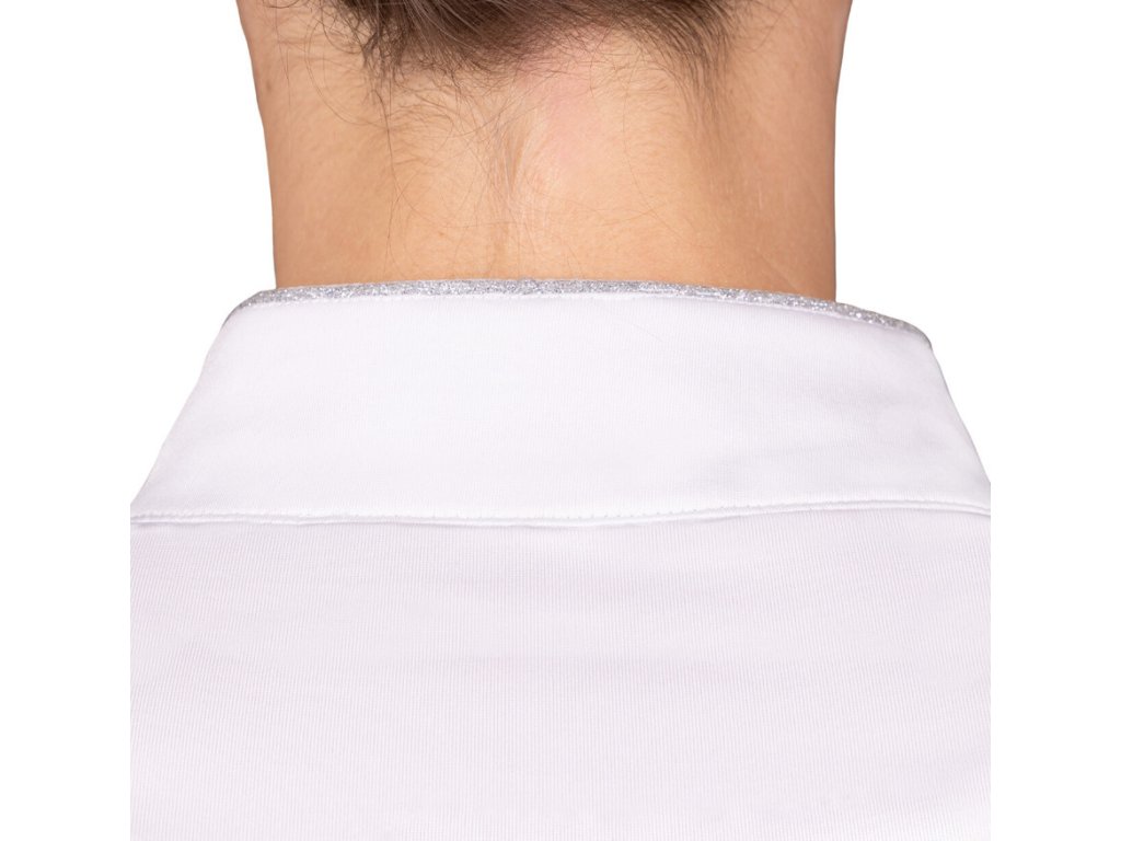 Wysokiej jakości dziecięca koszulka konkursowa wykonana z elastycznego materiału. Wyposażona w kołnierzyk i krótki zamek błyskawiczny zabezpieczony zatrzaskiem. Ozdobiona subtelnym, błyszczącym elementem na kołnierzyku.
