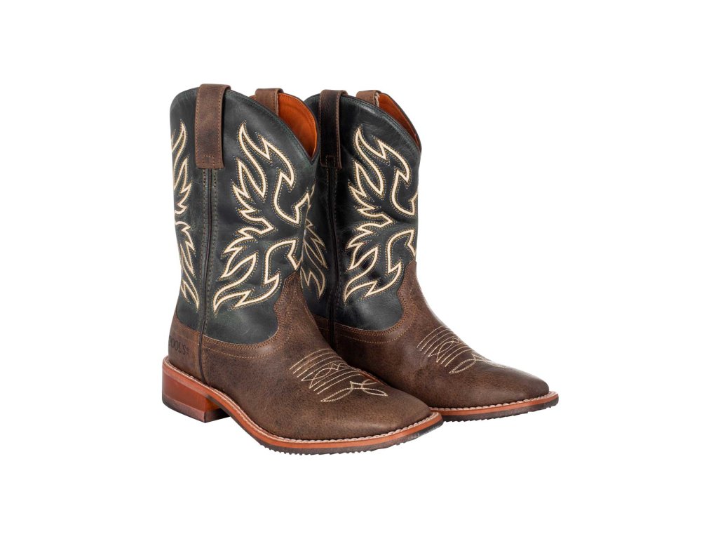 Westernowe, dwukolorowe buty Pool's z kwadratowym noskiem, wykonane z wysokiej jakości skóry cielęcej. Utrzymują ciepło stóp nawet w niskich temperaturach. Idealnie dopasowują się, zapewniając maksymalny komfort i swobodę ruchów. Podeszwa jest klejona i pikowana. Ozdobione pięknym haftem. Idealne do treningu i zawodów. Dostępne w rozmiarach 35–47.