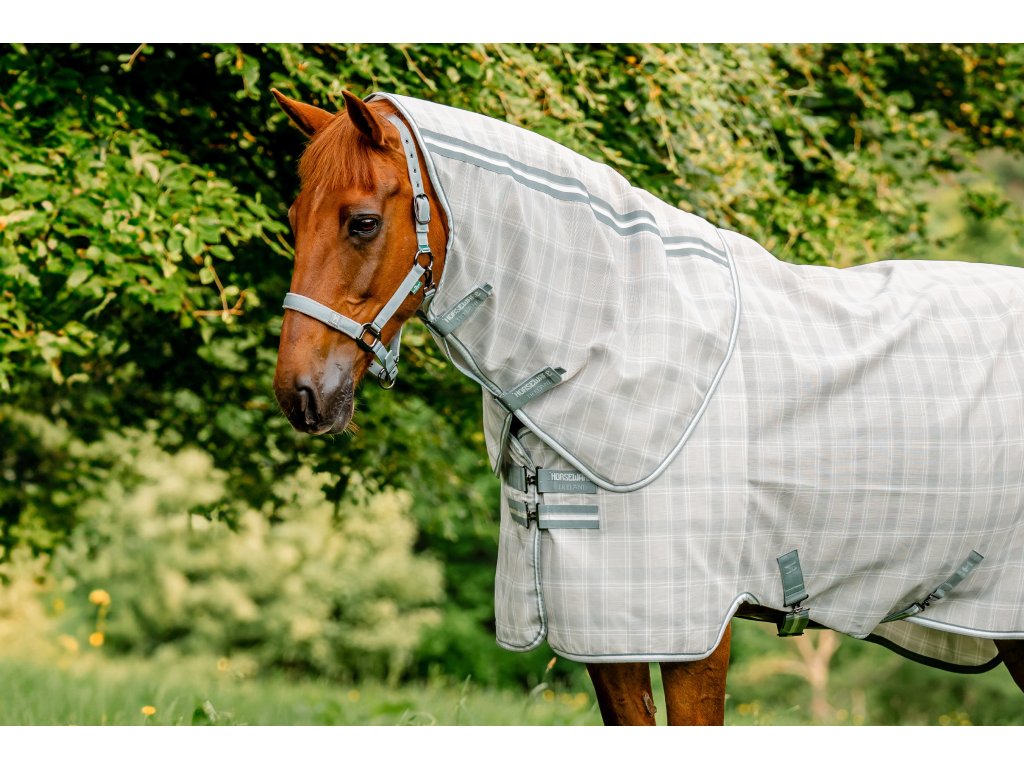 Wysokiej jakości siatkowa osłona szyi zaprojektowana, aby pasowała do derki przeciw owadom Newmarket Horseware. Wykonana jest z innowacyjnej, oddychającej i wytrzymałej siatki poliestrowej, która zapewnia optymalną cyrkulację powietrza i niezawodnie chroni przed irytującymi owadami i szkodliwym promieniowaniem UV. Design inspirowany jest kultowym wzorem w paski, który dodaje niepowtarzalnego i stylowego wyglądu. Zapięcie na rzep.