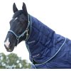 Wysokiej jakości element na szyję Quilt Combi Neck, z ociepleniem 150 g. Pasuje do podpinek Quilt. Wyściełany jedwabną podszewką Dermo-care z doskonałym odprowadzaniem wilgoci i właściwościami Stay-dry, które pomagają utrzymać konie w suchości i pozostawiają ich sierść gładką i miękką. Doczepiana część na szyję ma proste zapięcie na rzep i jest również mocowana do derki za pomocą rzepu.