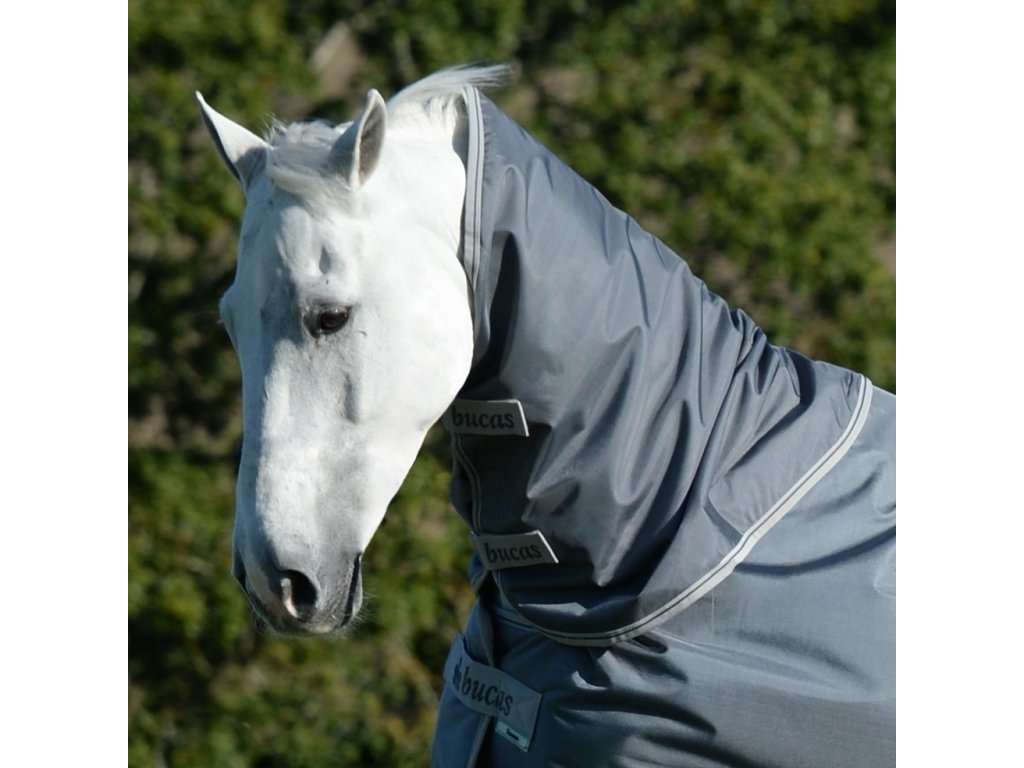 Kaptur jest wyposażony w polarową podszewkę Stay-dry wewnątrz materiału.Polarowa podszewka nie znajduje się na zewnątrz, aby zapobiec obtarciom grzywy. Część na szyję może być zatem również stosowana na wilgotną sierść.