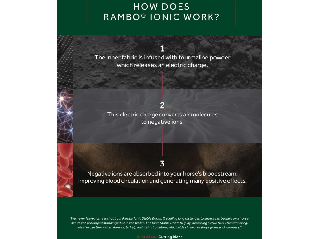 Unikalna podpinka terapeutyczna Rambo Ionic z kryształami turmalinu. Ocieplana 100g, zapewniając doskonałe właściwości ocieplające bez potrzeby używania kilku derek.Anatomiczny krój w okolicy nóg dla maksymalnej swobody ruchów. Proste zapięcie na klamrę z przodu. Derka jest bardzo oddychająca. Podszewka z poliestru 210 T i nadruk z technologią jonową z proszkowanymi kryształami turmalinu. Turmalin emituje negatywne jony do organizmu. Jony ujemne dają bardzo korzystne efekty. Zwiększają krążenie krwi, co prowadzi do stymulacji metabolizmu. Zwiększają dopływ tlenu i składników odżywczych do komórek i tkanek. Szybciej dostarczają tlen do mózgu i pomagają poprawić koncentrację. Więcej informacji o technologii jonowej można znaleźć w szczegółowych informacjach. Podpinka bardzo łatwo mocuje się do derek za pomocą rzepów i zatrzasków przy pasku pod ogonem. Ten system mocowania idealnie pasuje i zapobiega ześlizgiwaniu się derki.