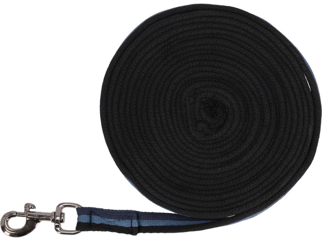 Wysokiej jakości lonża wykonana z wyjątkowo miękkiego i wytrzymałego materiału z klasycznym karabińczykiem. Posiada pętlę na końcu, dzięki czemu jest wygodna do trzymania. Dostarczana w praktycznej torbie zapinanej na zamek błyskawiczny. Długość 8 m.