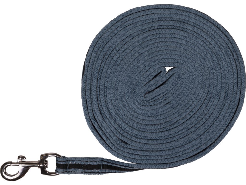 Wysokiej jakości lonża wykonana z wyjątkowo miękkiego i trwałego materiału z klasycznym karabińczykiem. Wyposażona w pętlę na końcu, która zapewnia wygodny chwyt. Dostarczana w praktycznej torbie zapinanej na zamek błyskawiczny. Długość: 8 m.
