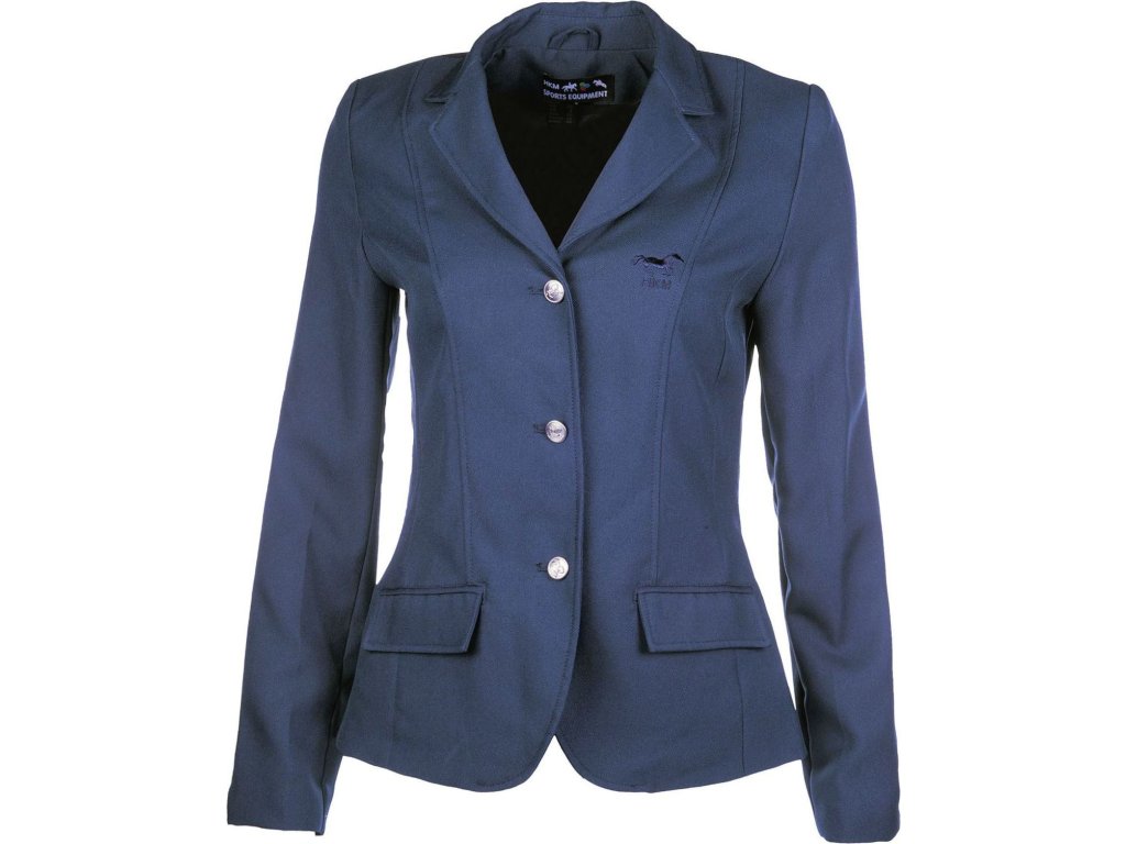 Klasyczna damska marynarka konkursowa zapewniająca wysoki komfort i elegancki wygląd. Wykonana z elastycznego i oddychającego materiału. Dopasowany krój kurtki pięknie podkreśla kobiece kształty. Zapewnia maksymalną swobodę ruchów dla najlepszej wydajności. Posiada również dwa rozcięcia z tyłu oraz haftowane logo po lewej stronie klatki piersiowej. Dostępna w wielu rozmiarach.