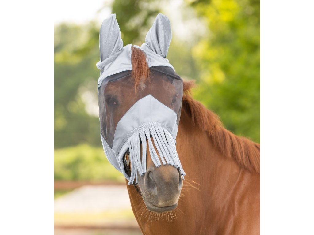 Idealna ochrona dla koni przed owadami. Pięknie dopasowuje się dzięki elastycznemu materiałowi, który zapewnia komfort konia. Maska przeciw owadom jest wyposażona w miękki plusz w okolicy uszu i nad nozdrzami. Prosta i szybka w użyciu dzięki zapięciu na rzep. Z otworem na grzywkę. Maska posiada ochronę UV. Uzupełniona frędzlami przeciw owadom.
