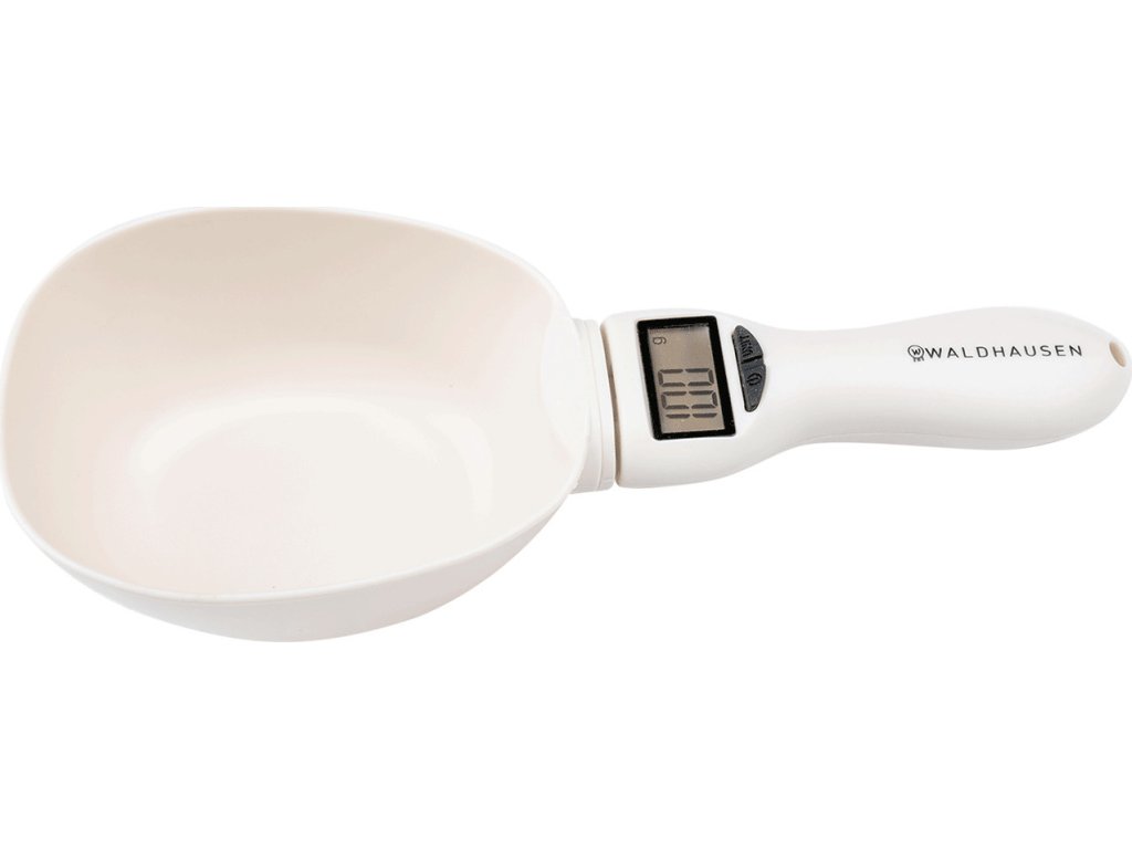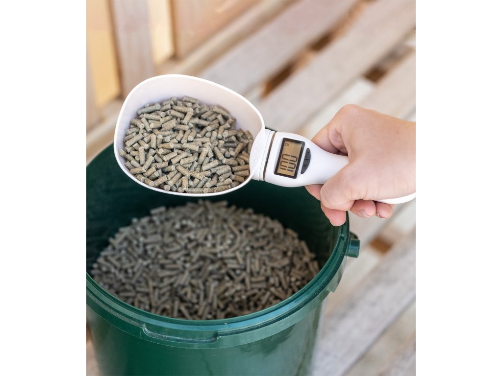 Bardzo praktyczny cyfrowa miarka. Nadaje się do odmierzania różnych rodzajów karmy i suplementów. Przełączanie między jednostkami (gramy, mililitry, szklanki i uncje). Łyżkę można wyjąć z uchwytu i po prostu umyć w zmywarce. Maksymalna waga: 800 g. Łyżka z miarką ma funkcję tary i blokadę wagi. Bateria nie jest dołączona.