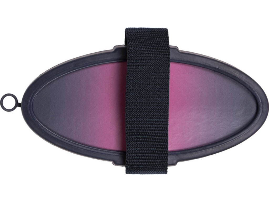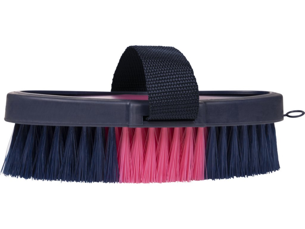 Miękka szczotka z plastikowym uchwytem i nylonowym paskiem dla wygodnego trzymania. Dwukolorowe, miękkie włosie z łatwością usuwa wszelkie pozostałości brudu z sierści konia.