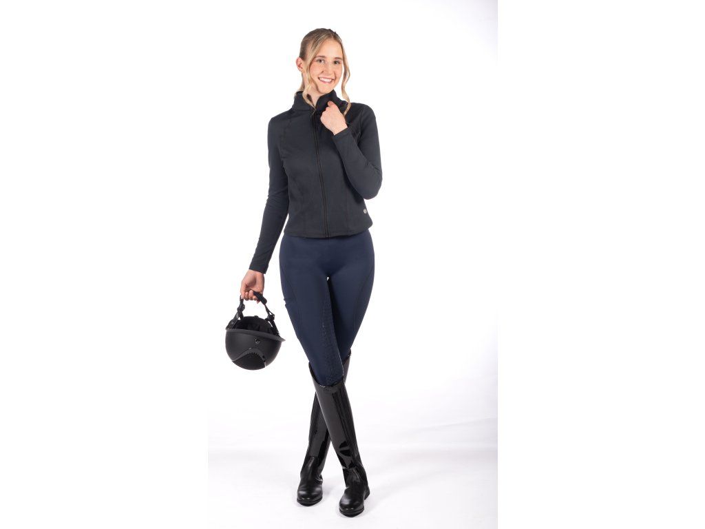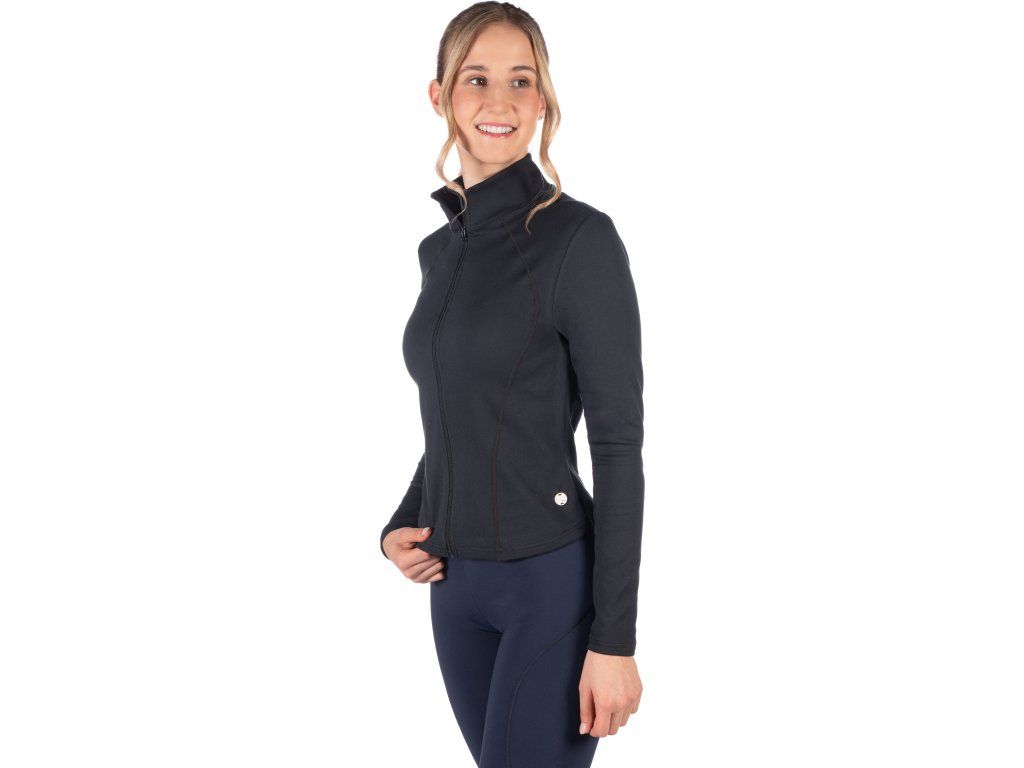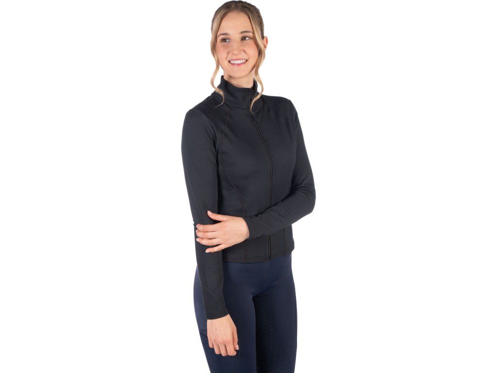 Funkcjonalna bluza damska, która idealnie dopasowuje się do sylwetki i podkreśla kobiece kształty. Wykonana z miękkiego i gładkiego materiału z meszkiem od spodu, co sprawia, że jest wygodna w noszeniu i ciepła. Nowoczesny design uzupełniają ozdobne przeszycia i subtelne, metalowe logo marki HKM. Dzięki elastanowi, bluza idealnie dopasowuje się do sylwetki i zapewnia maksymalny komfort podczas ruchu.