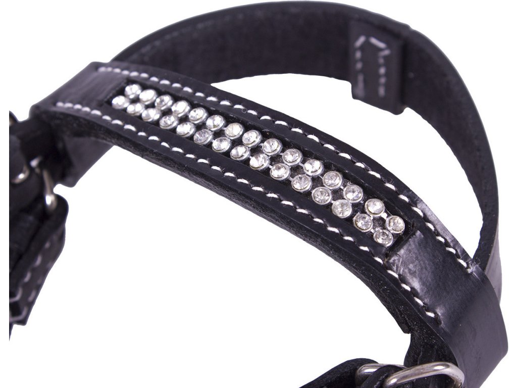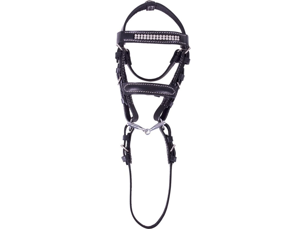 Ozdobne mini ogłowie Madonna, które może być używane na przykład jako breloczek do kluczy lub jako ozdoba lusterka wstecznego. Posiada wszystkie elementy prawdziwego ogłowia, a naczółek jest ozdobiony rzędami srebrnych kamieni.